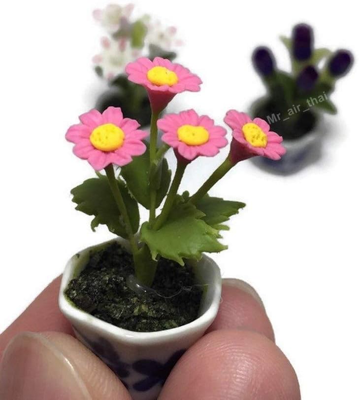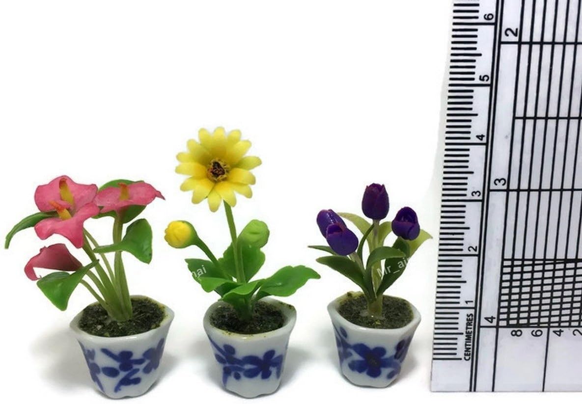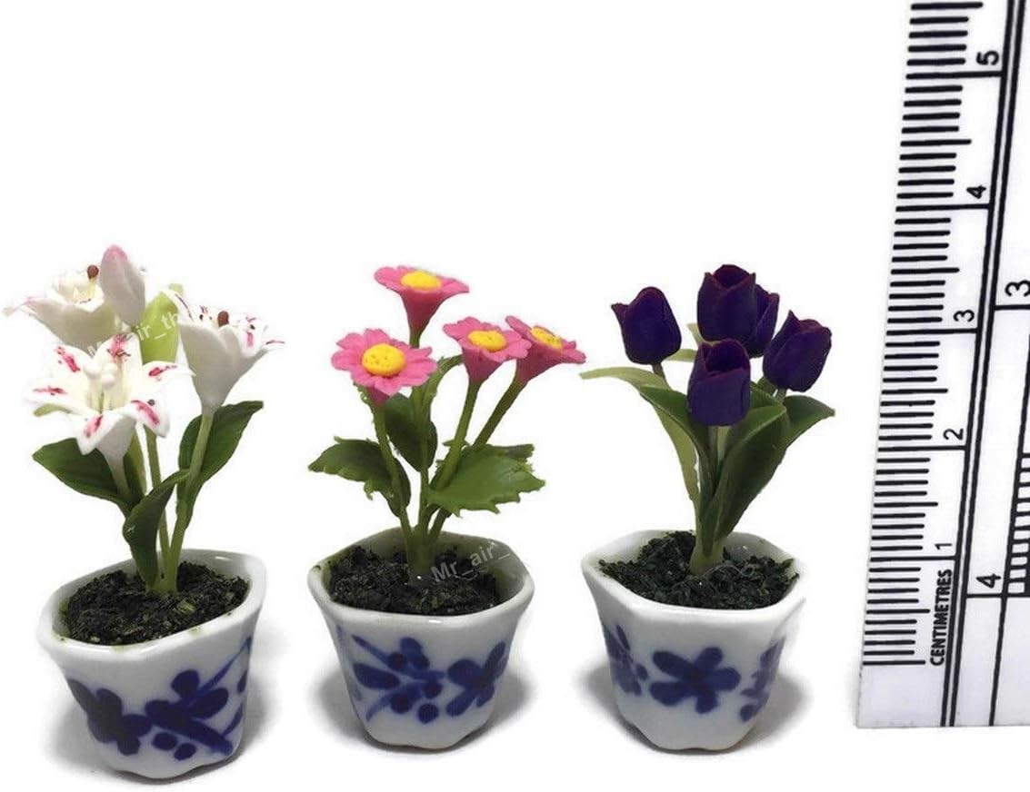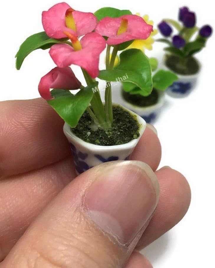 3pc Miniature Flower Clay Dollhouse Fairy Garden Mini Plant Trees Ceramic Orchid Paint Furniture #060