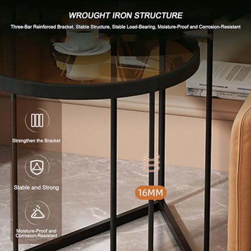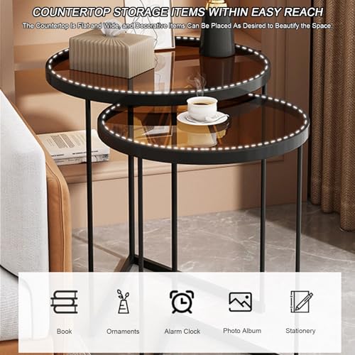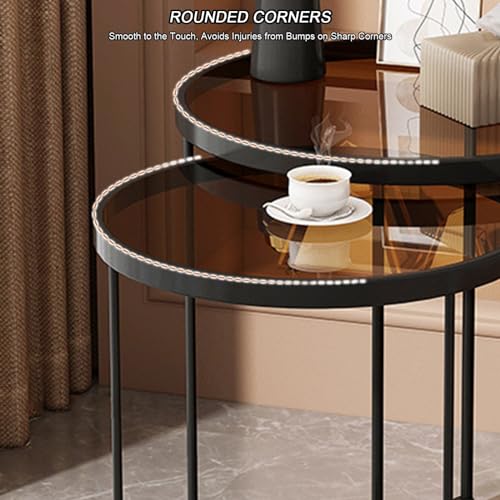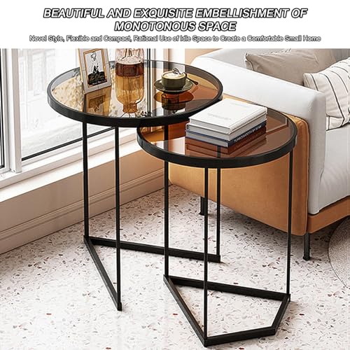 Coffee Table Set of 2 Furniture Small Metal Nest of Tables Tempered Glass Nesting Side Table for Home & Office Decor B,50+40CM