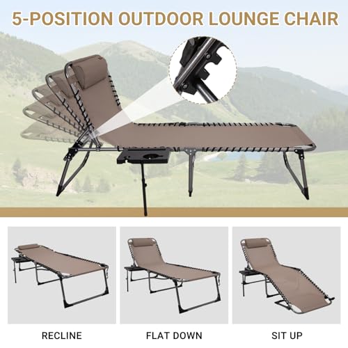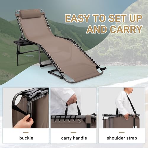 KingCamp Chaise Lounge Outdoor Adjustable Textilene Waterproof Patio Lounge Chair with Side Table Portable Camping Reclining Chair with Pillow (1 Pack, Black)