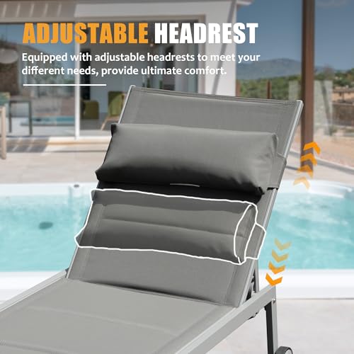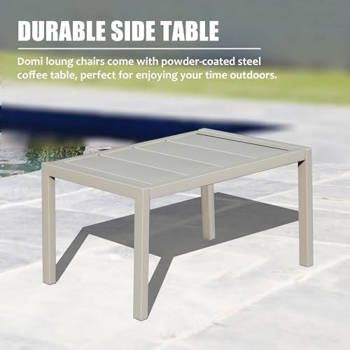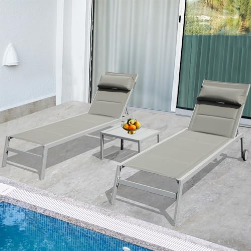 Domi Outdoor Patio Chaise Lounge Set of 3, Aluminum Pool Lounge Chairs with Side Table and Wheels, Textilene Padded Adjustable Recliner All Weather for Poolside, Beach, Yard, Balcony (Khaki)