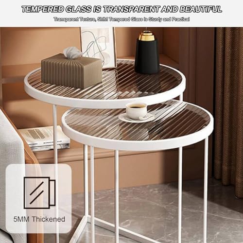 Nest of 2 Tables, Nesting Coffee Table Round Tea Table Modern End Table Side Table with Sturdy Metal Legs for Living Room Lounge or Small Space, White