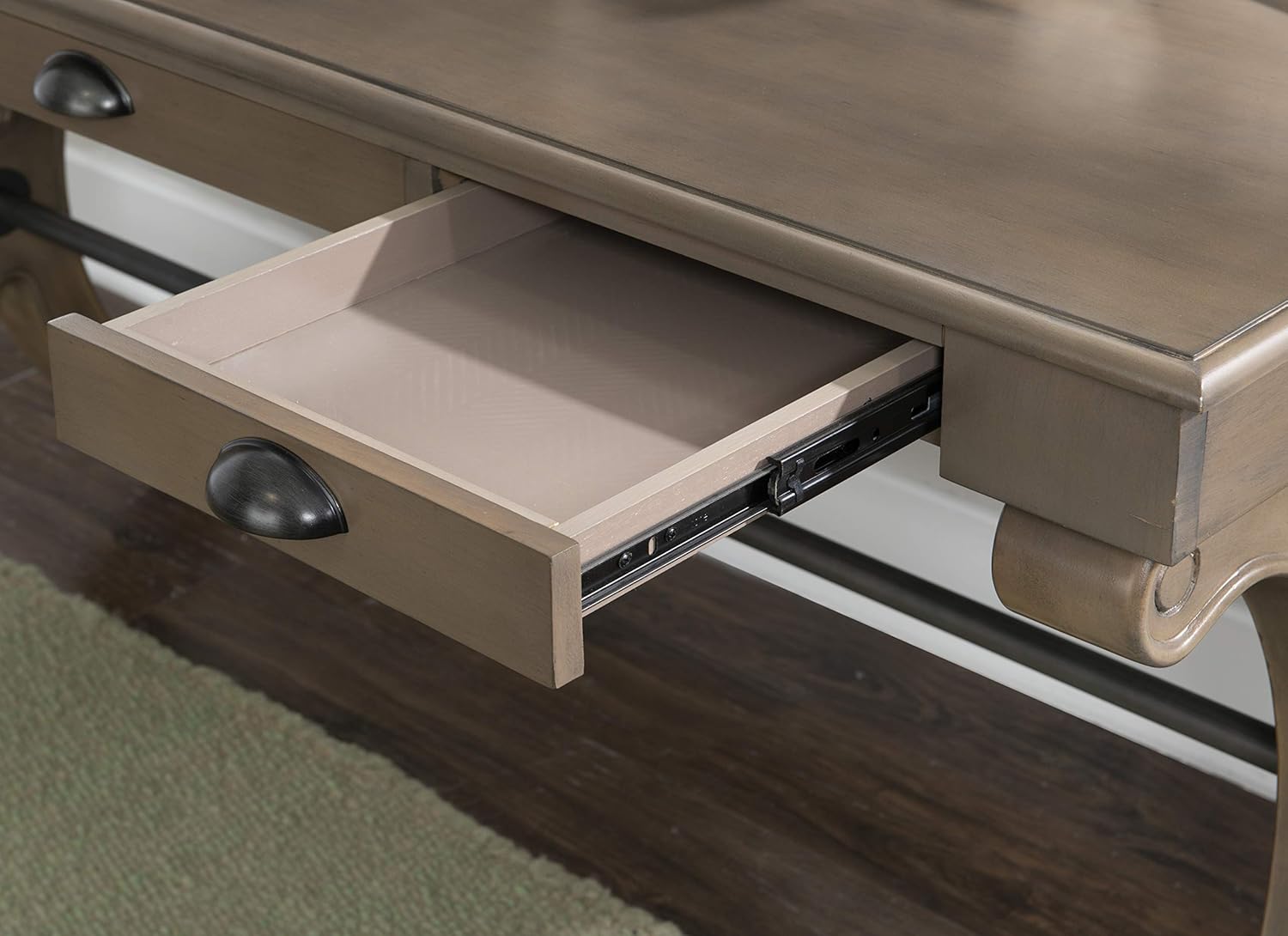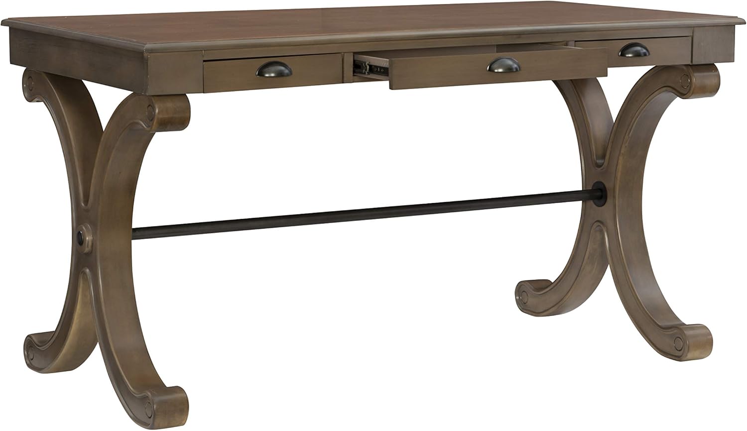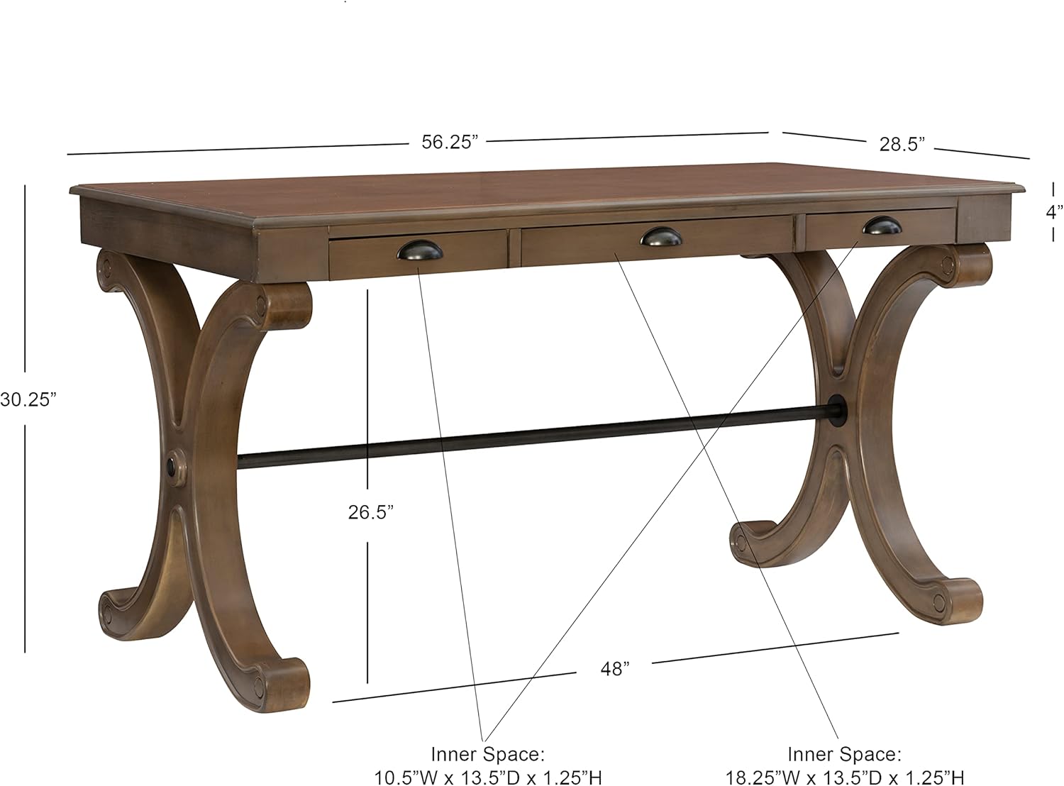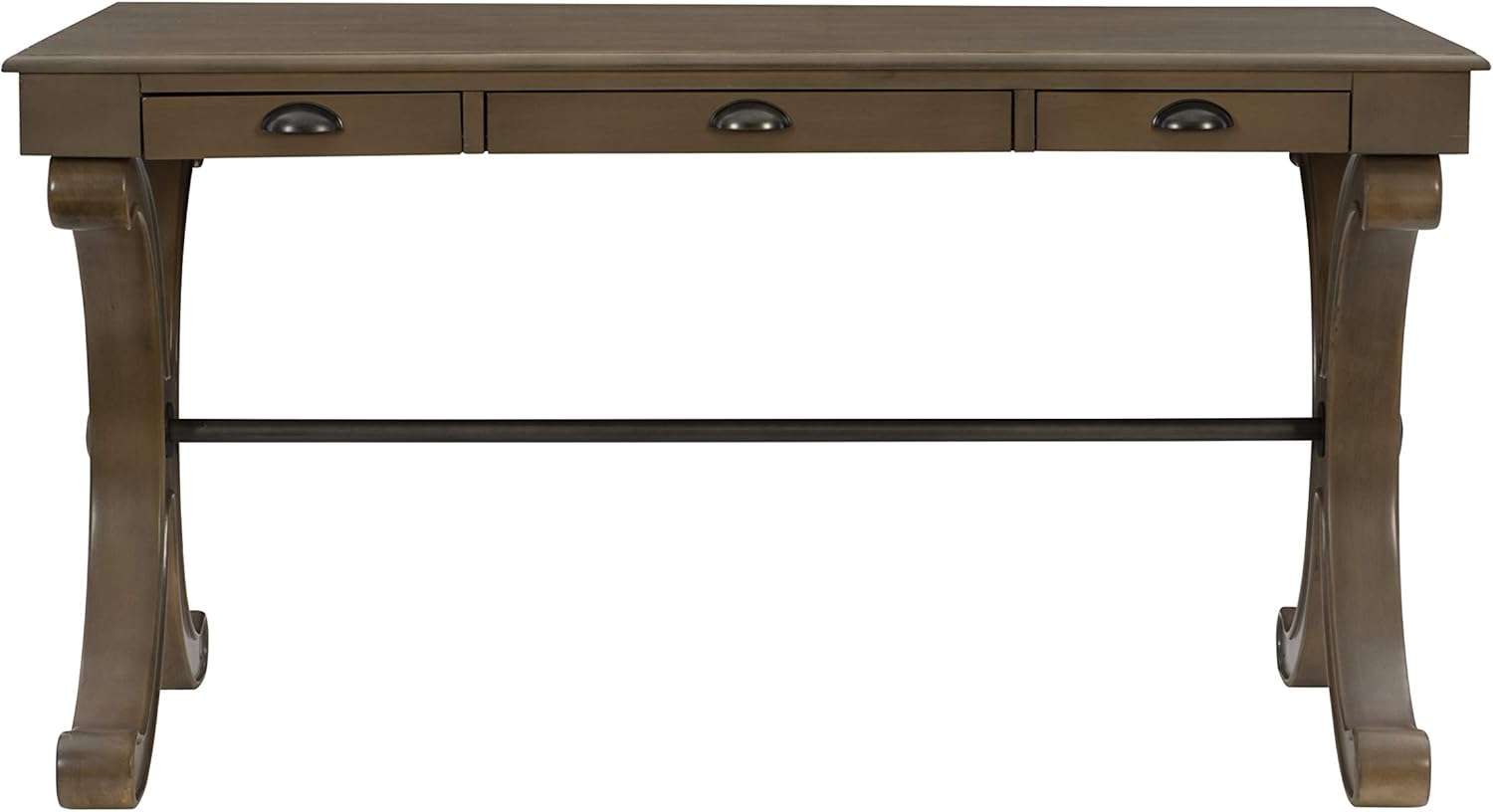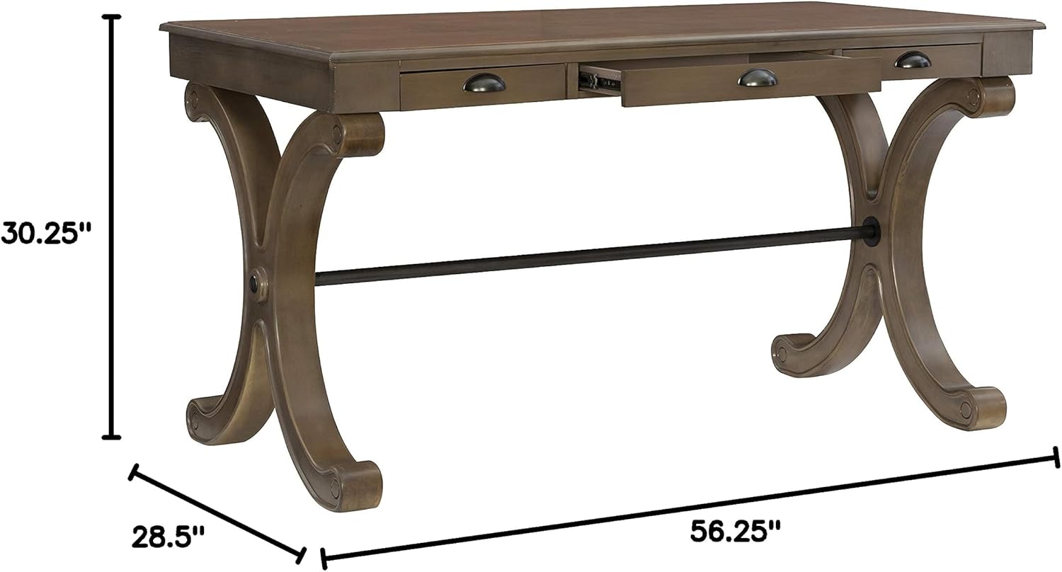 Three Drawer Grey Powell Flagler Desk, 56.25”W x 28.5”D x 30.25”H