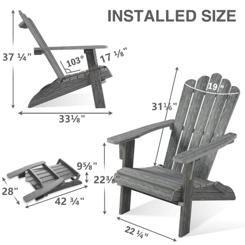Folding Adirondack Chair, Poly Lumber Fire Pit Chair, Durable All-Weather Patio Chairs for Garden, 350 Lbs Support Oversized Adirondack Chair (Bright Brown, 1 pc)