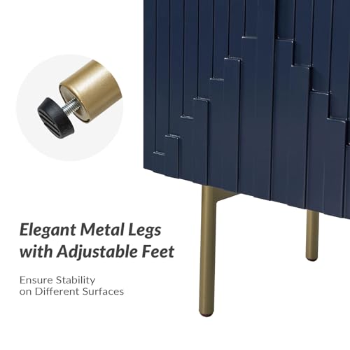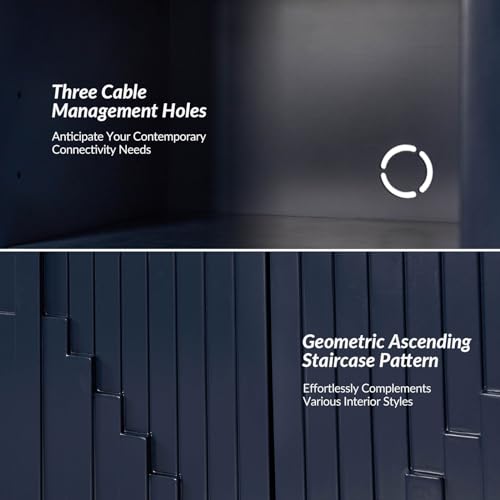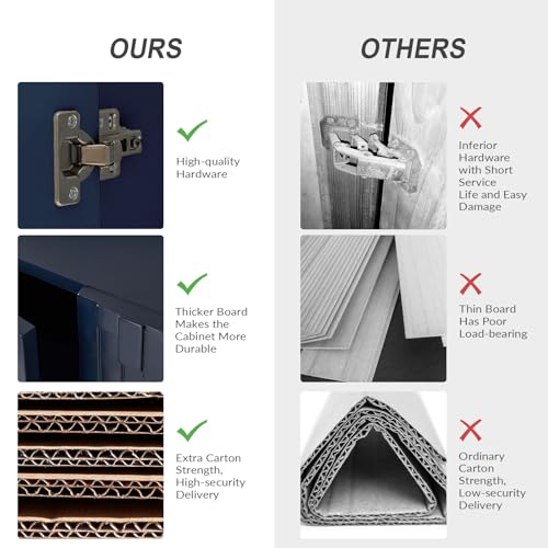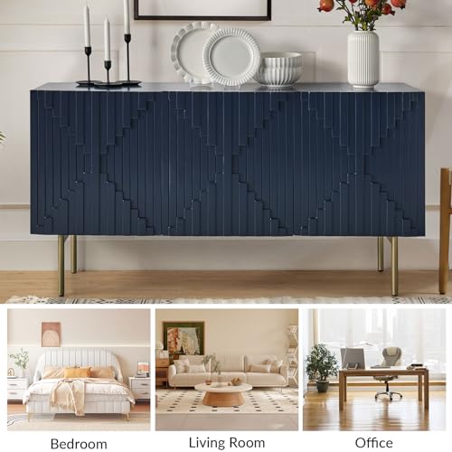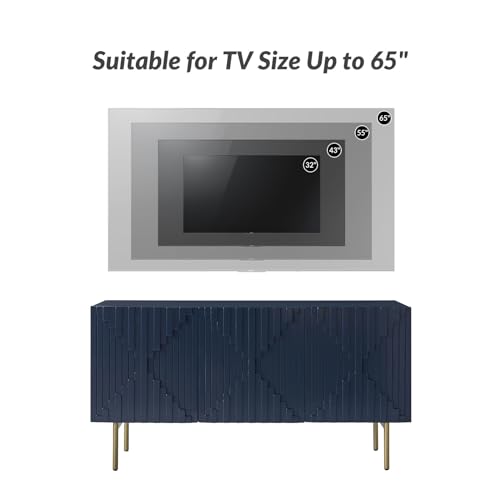 HULALA HOME Sideboard Buffet with Three-Dimensional Door Molding, 58“ TV Stand with Cable Management Design(Navy)