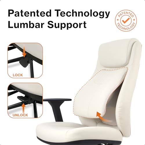 WELLNEW Posturelift Ergonomic Office Chair. Patented Lumbar Support for Posture and Lower Back Pain. Comfortable Vegan Leather, Home Computer Executive Desk Chairs Long Hours Sitting All Day (Gray)