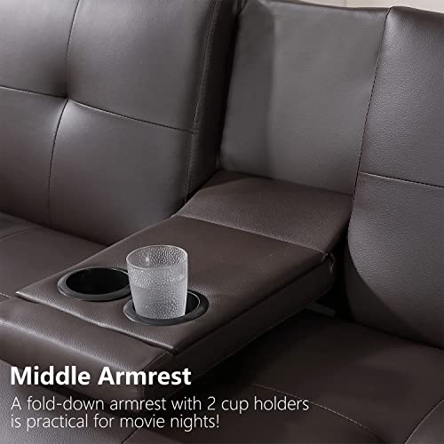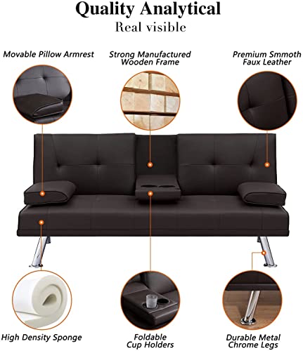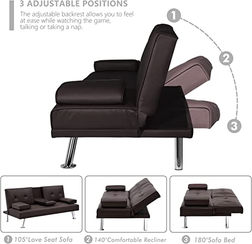 Anwick Modern Leather Futon Sofa Bed,Convertible Folding Couch Recliner Sleeper Loveseat for Small Space,Apartment,Office,Dorm,with Cup Holders and Removable Armrest (Orange)