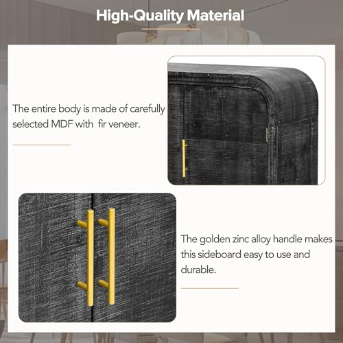 Retro Minimalist Curved Sideboard with Gold Handles and Adjustable Dividers for Living Dining Room, Antique Black