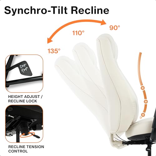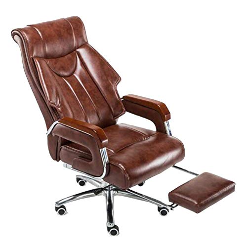 Executive Recline Faux Leather Chair, High Back Reclining Recliner Swivel Computer Desk Study Retractable Footrest arm Chair Padded Office Chair