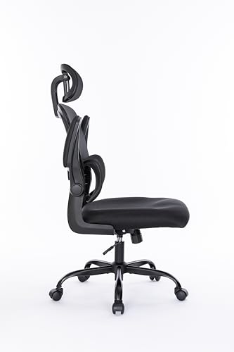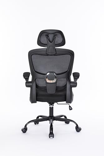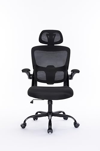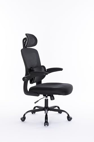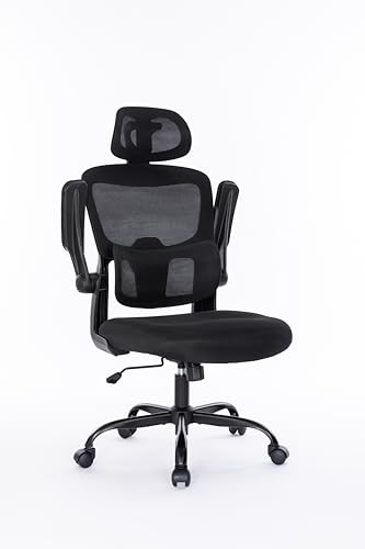 Breathable Mesh Computer Chair with 3D Adjustable Lumbar Support, High Back Desk Chair with Flip-up Arms, Executive Computer Chair Home Office Task Swivel Rolling Chairs for Adults (Cream)