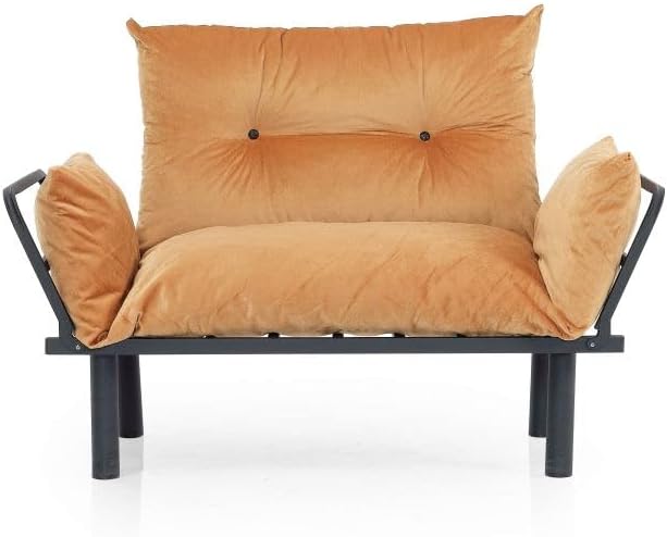 Futon Love Seat with Ottoman & Footstool, Orange, Standard Sofa Chair for Living Room, Bedroom, Dining Room, Office, Guest Room, Kids Room