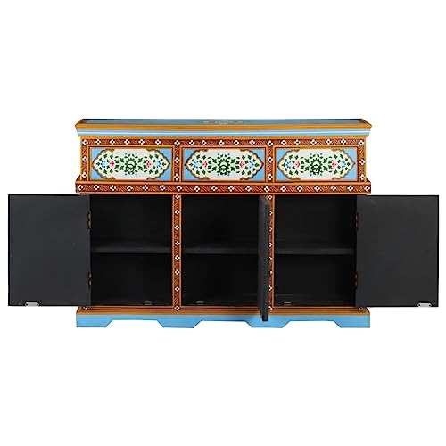 Hand-Painted Sideboard, Coffee Bar Cabinet Display Cabinet Entryway Cabinet Kitchen Pantry Suitable for Small Spaces Office Home Living Room, Multicolor 43.3"x11.8"x29.9" Solid Mango Wood