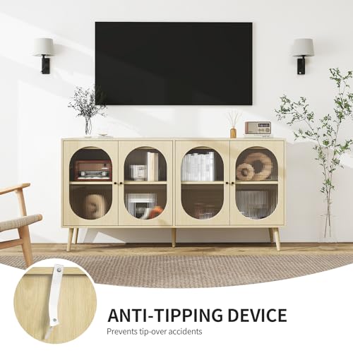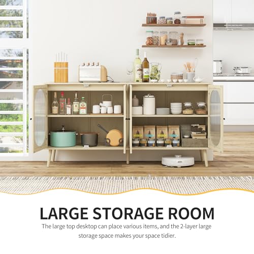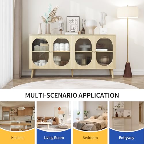 Sideboard, Modern Sideboard, Decorative Storage Cabinet with Hazy PC Panel Doors, Freestanding Cabinet, Cupboard, Console, for Kitchen, Living Room and Hallway (Black)