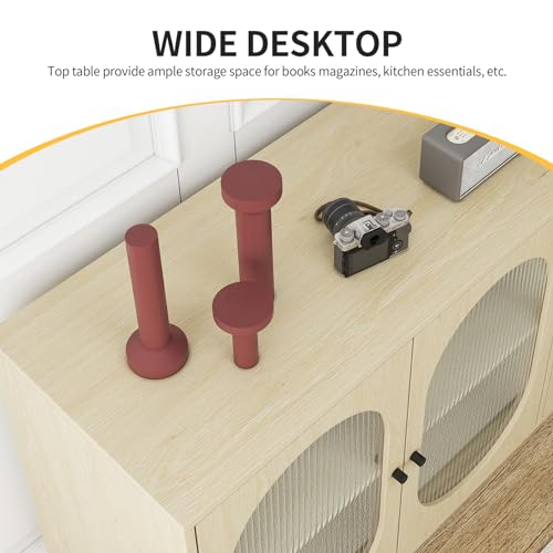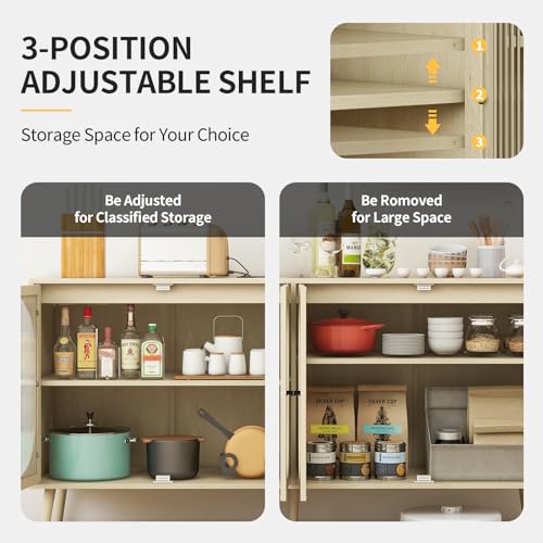 Bellemave Retro Curved Sideboard Buffet Cabinet with Gold Handles and Adjustable Dividers Accent Storage Cabinet Freestanding Entryway Cabinet for Kitchen, Dining Room (Antique Black)