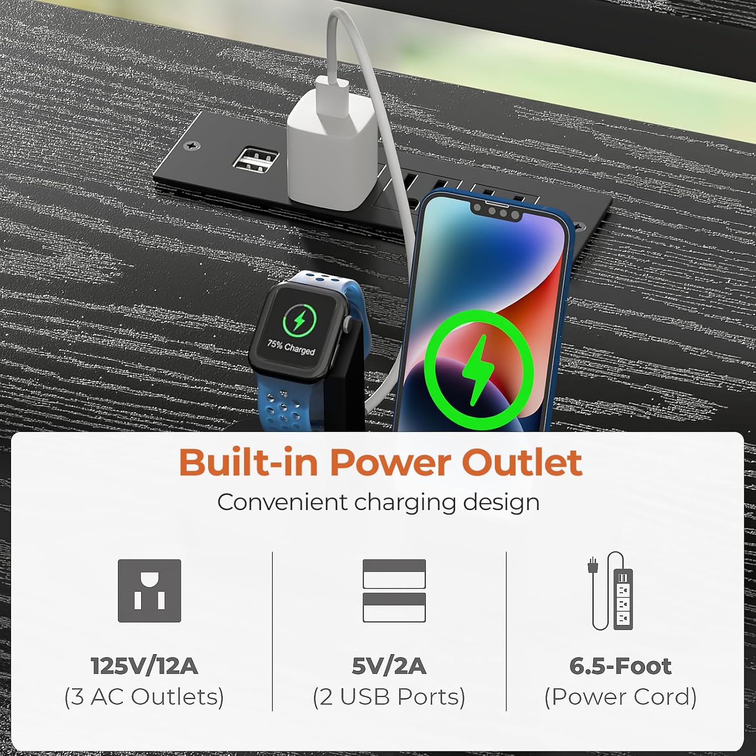 Coavas 31.5 inch Folding Desk No Assembly Required, 39.4 inch Gaming Desk with Power Outlets and Storage Shelves,Black