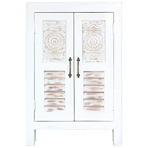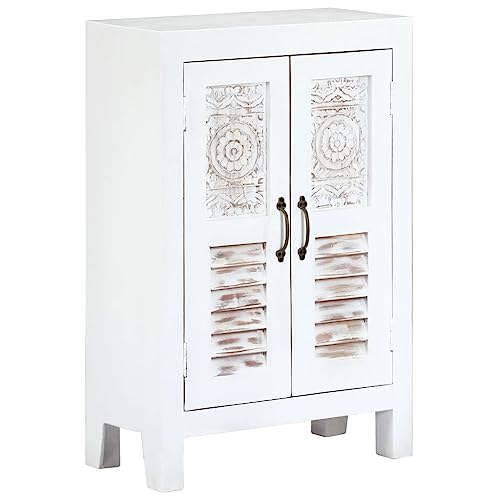 Buffets & Sideboards Carved Sideboard White 23.6"x11.8"x35" Solid Mango Wood,Distinctive Mango Wood Sideboard: Elegant Storage for Your Home Cabinets & Storage