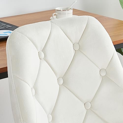 Cute Velvet Office Desk Chair,Upholstered Home Velvet Executive Chair Swivel Leisure Chair with Wheels,Ergonomic Office Chair for Living Room,Bedroom,Office,Vanity Study(Cream Color)