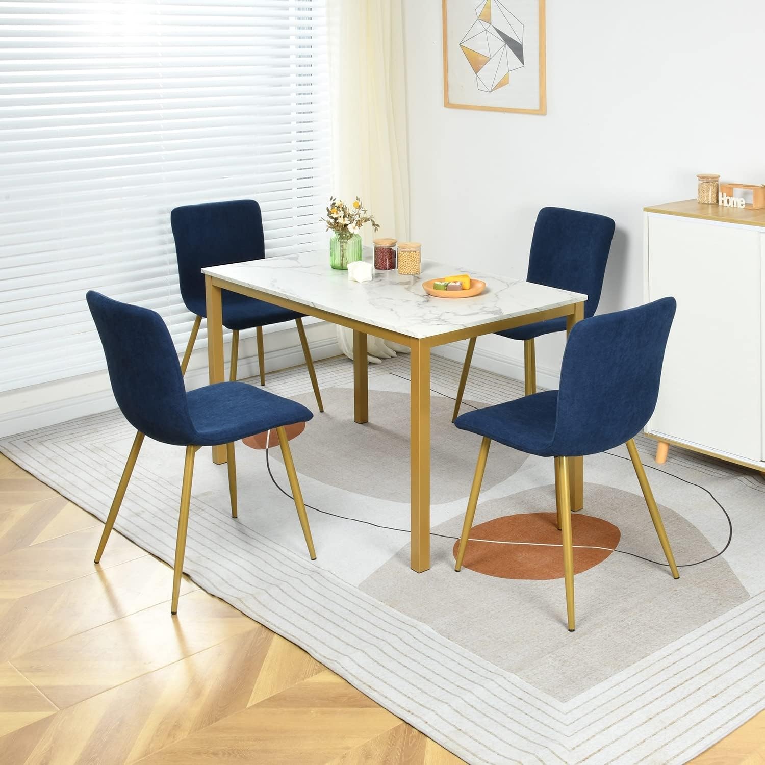 Overstock Homylin Gold Metal Dining Table with White Marble Top 55.1''W x 31.4''D - Black
