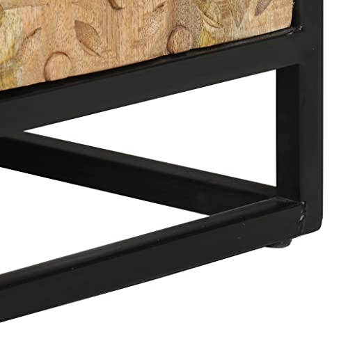 Hand Carved Sideboard 23.6"x13.8"x29.5" Solid Mango Wood,Rustic Mango Wood Sideboard with Carved Doors for Spacious Storage Storage Cabinet Buffet Table Sideboard