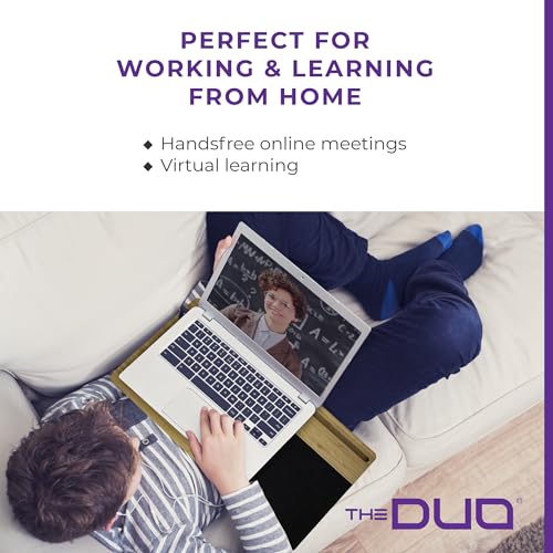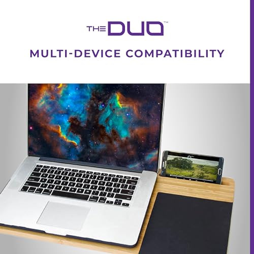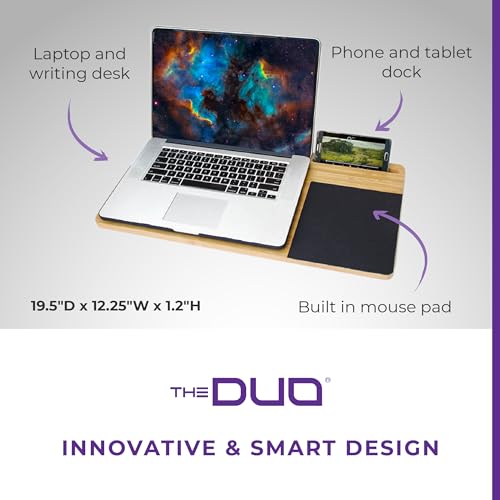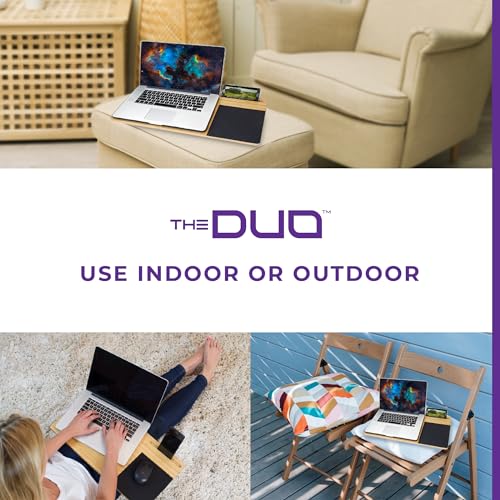 THE DUO Modern Media Desk Bamboo - Laptop Desk with Phone Holder and Mouse Pad