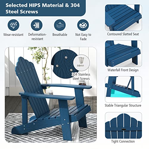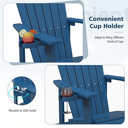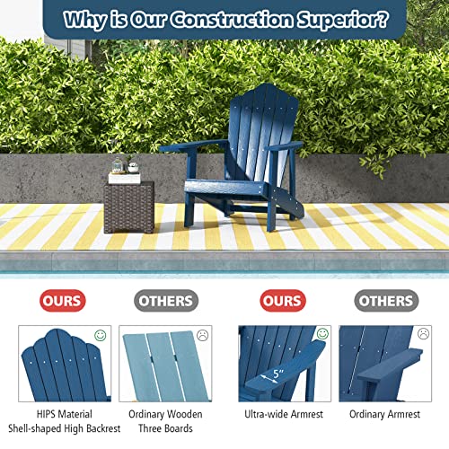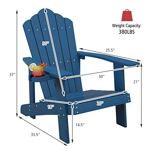 Tangkula Oversized Adirondack Chair, Patio Lounge Chairs w/Adjustable Cup Holder, HIPS Armchairs Slatted Chair, Outdoor Weather Resistant Fire Pit Chair for Deck Backyard Garden Porch (2, Green)