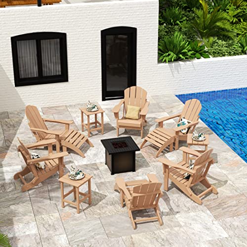 WO Home Furniture Adirondack Chair Table Set of 2 PCS Outdoor Folding Chair w Side Table Weather/UV Resistant for Lawn, Garden, Bon Fire, Balcony (Weathered Wood)