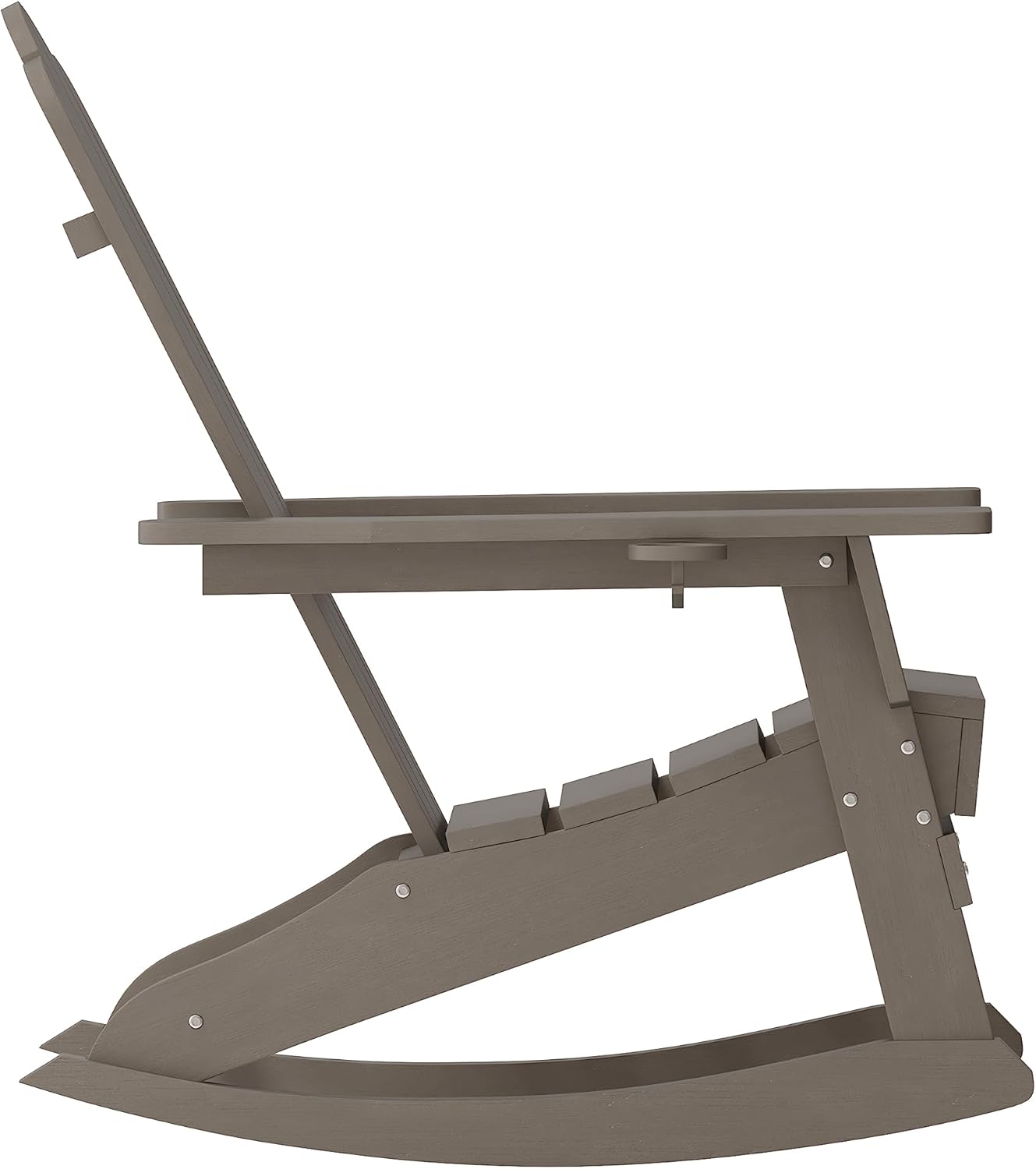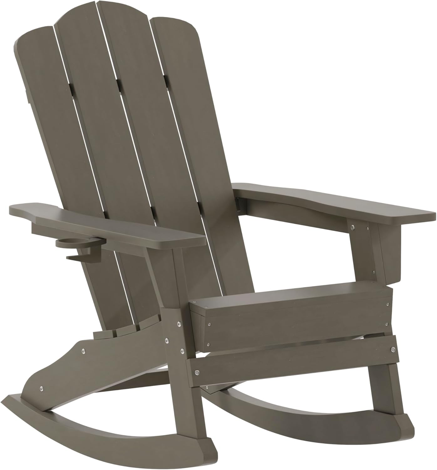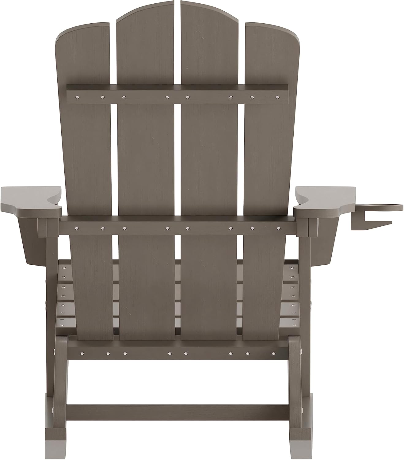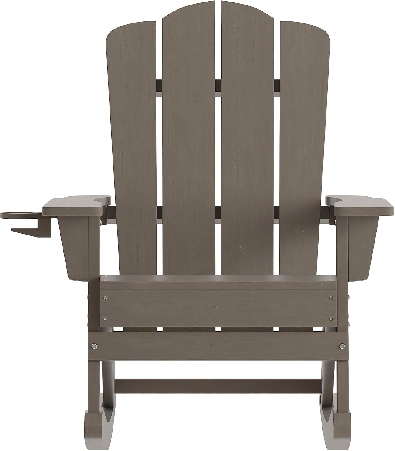 EMMA + OLIVER Tiverton Adirondack Rocking Chair with Cup Holder, Weather Resistant Poly Resin Adirondack Rocking Chair, Brown