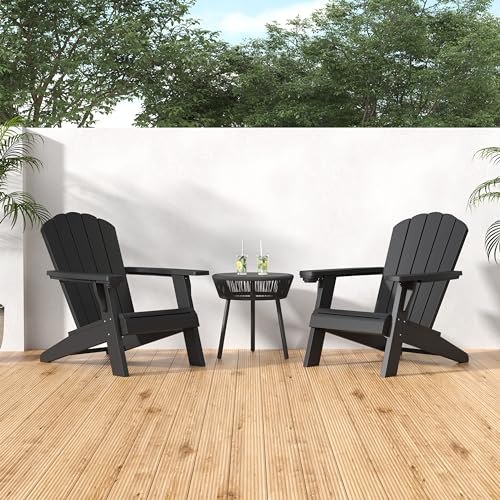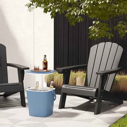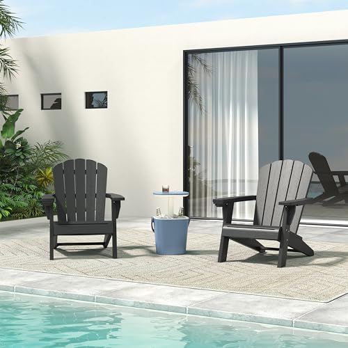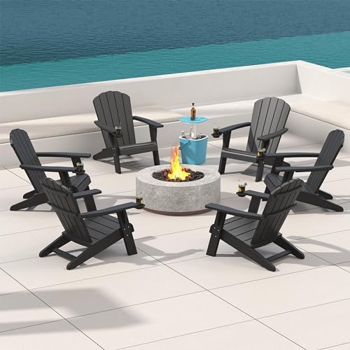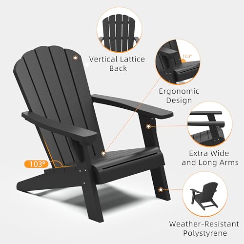Outdoor Adirondack Chair Set of 4 with Cup Holder, Patio Chair with Wood Grain Texture,Weather-Resistant Outdoor Chair for Poolside, Patio, Backyard, Garden, Fire Pit Seating