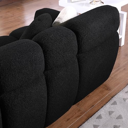 Modern LIving Room Deep Seat Overstuffed Memory Foam Cloud Sofa Comfy Sherpa Boucle 3 Seater Couch with 2 Pillows for Home,Office,Apartment,Company and Lobby, 86.5", Beige