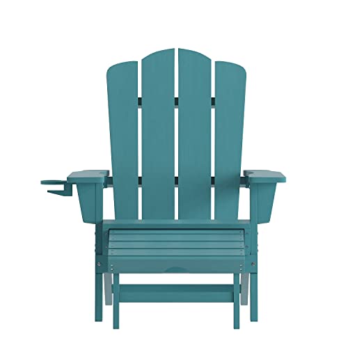 Flash Furniture Newport Adirondack Cup Holder and Pull Out Ottoman, All-Weather HDPE Indoor/Outdoor Lounge Chair, Set of 2, Blue