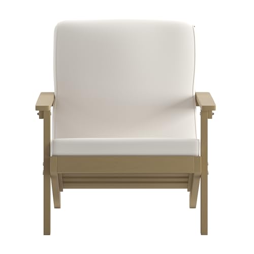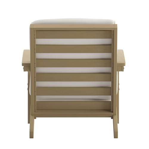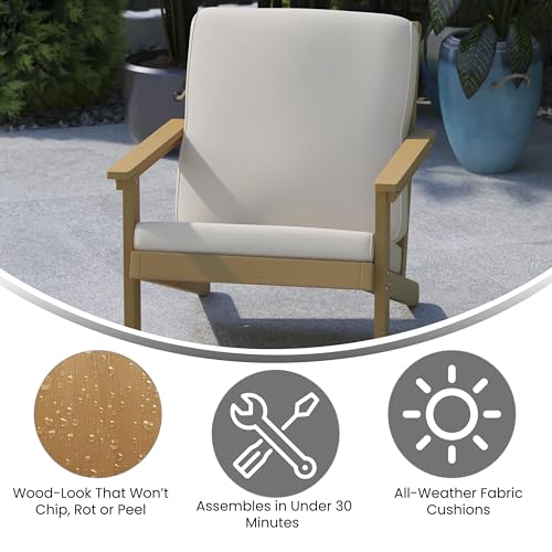 BizChair Adirondack Style Deep Seat Patio Club Chair with Cushions - Natural Cedar Poly Resin Frame - Cream All-Weather Cushions - Indoor/Outdoor