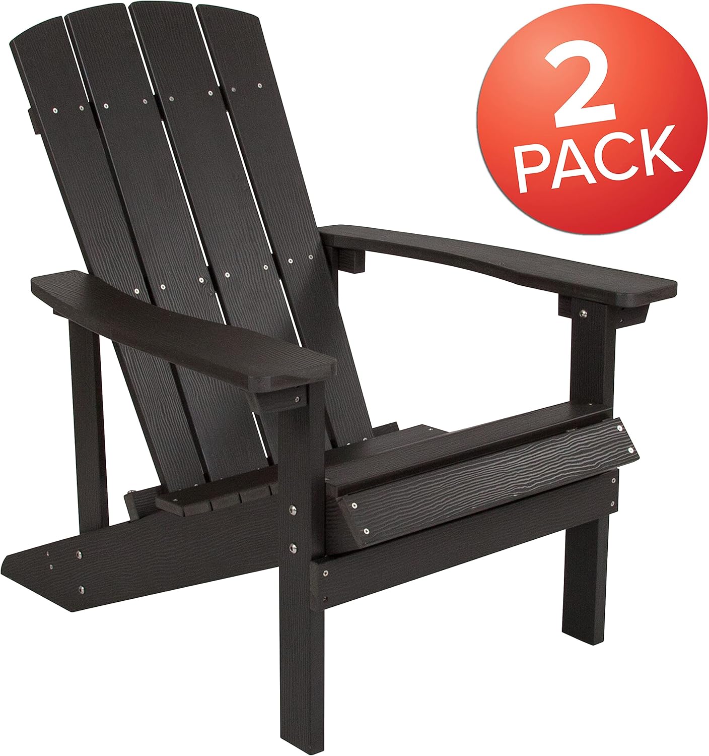 BizChair Poly Resin Adirondack Chair - Slate Gray - All Weather - Indoor/Outdoor - Set of 2