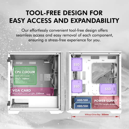Zalman Z1 Iceberg mATX Gaming PC Case - 3 x 120mm Fans Preinstalled - Swing Door Tempered Glass Side Panel - 2 x USB 3.0 - Micro ATX, Mini-ITX, White