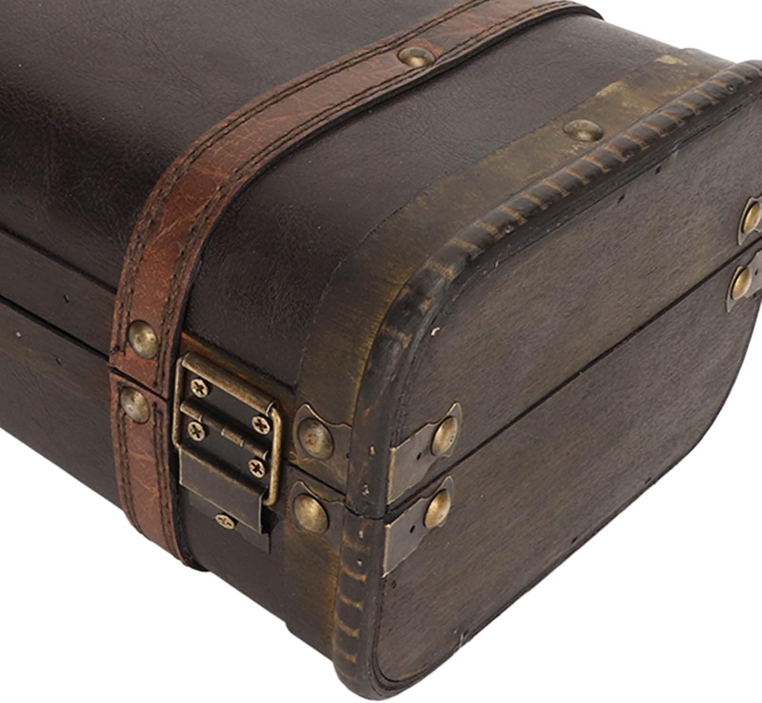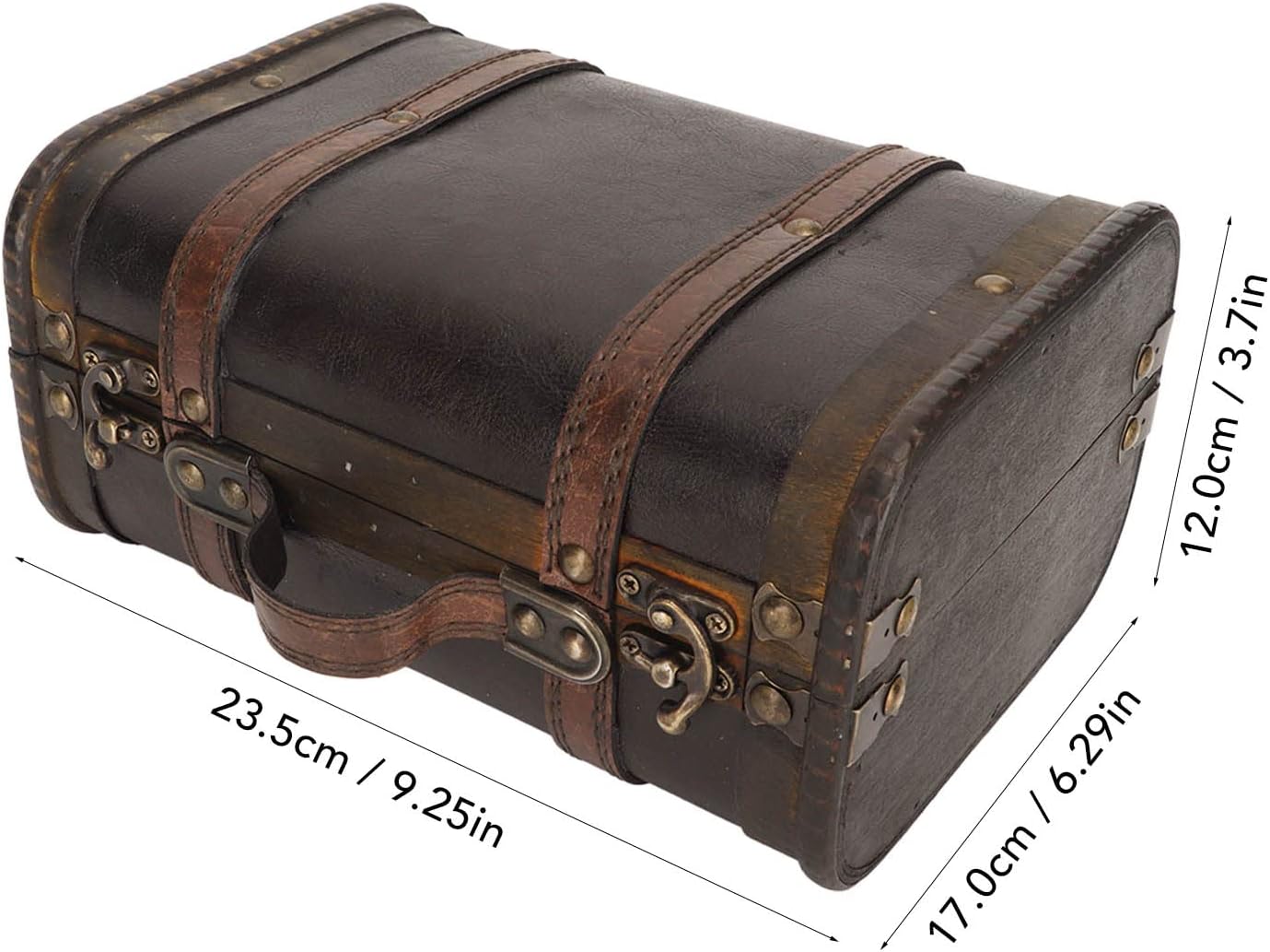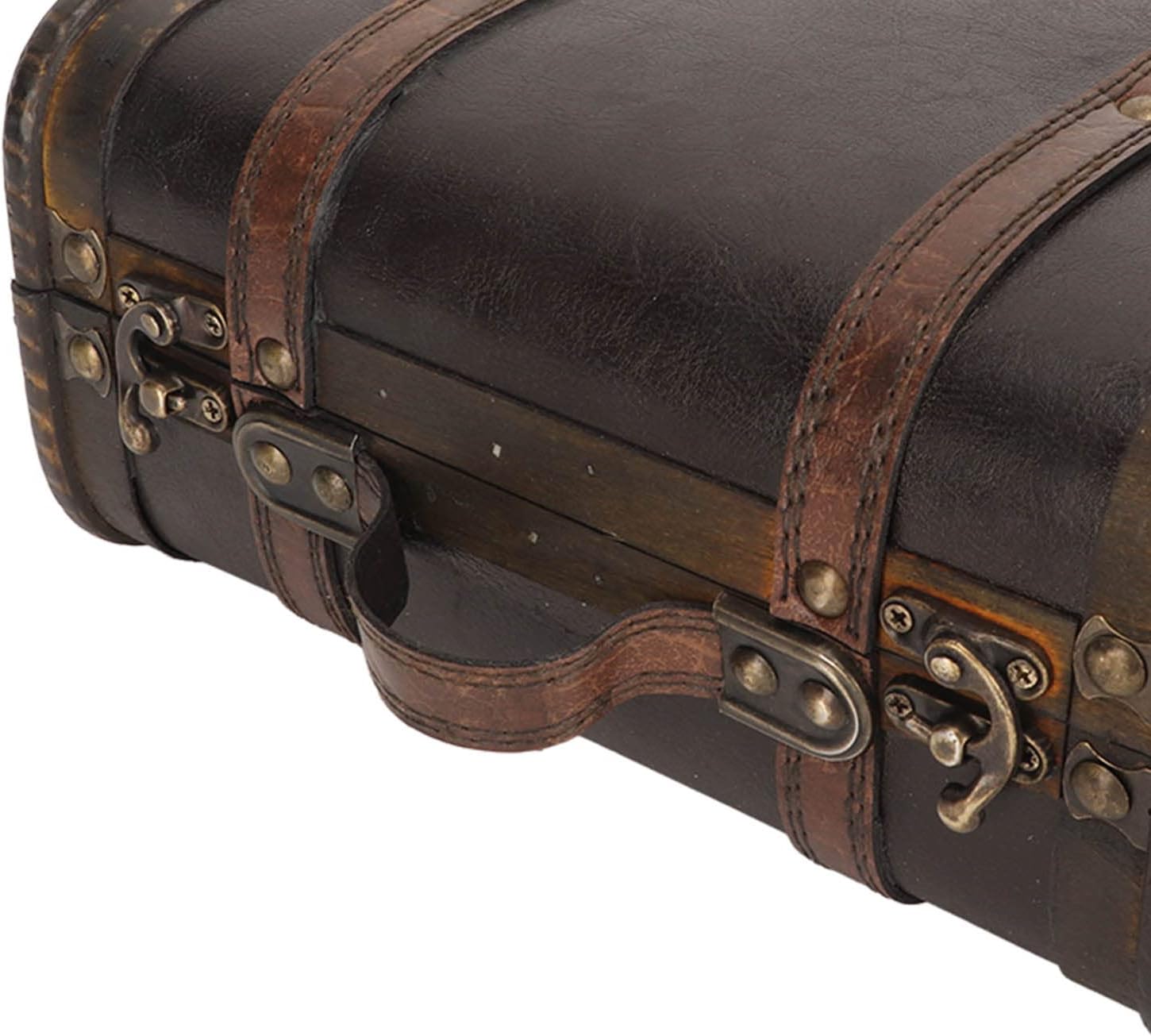 Retro Wooden Suitcase, Artificial Leather Jewelry Storage Box Decoration Black Brown, Large Capacity Suitcase Storage Box, Vintage Trunk, Widely Applicable Decorative Suitcase