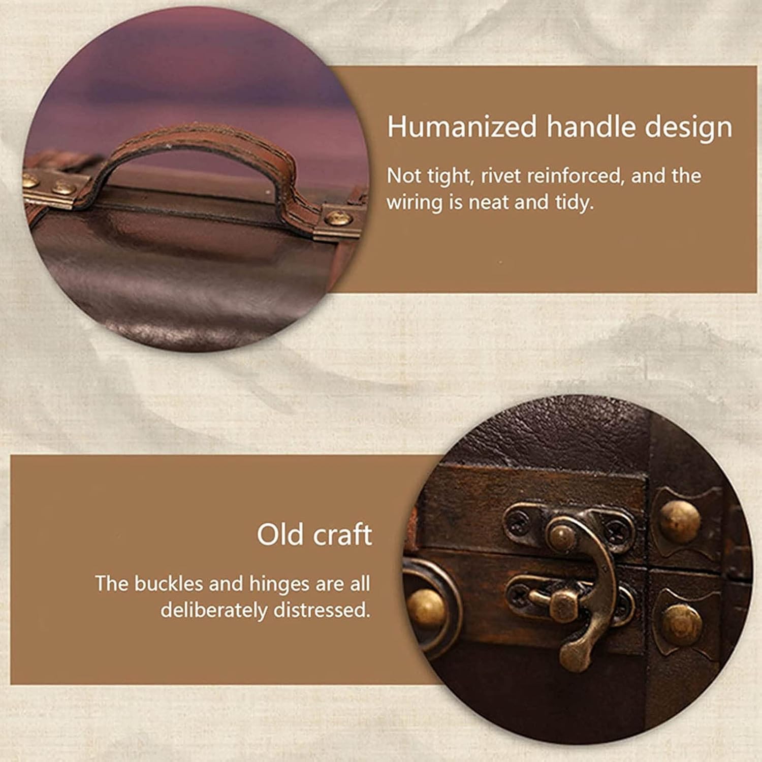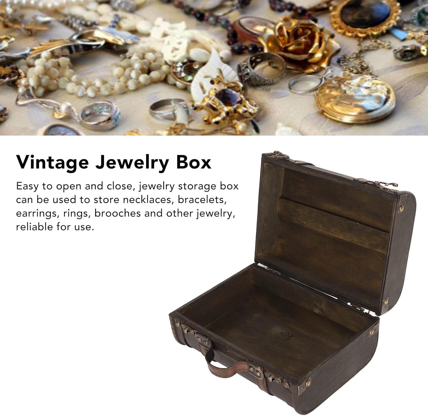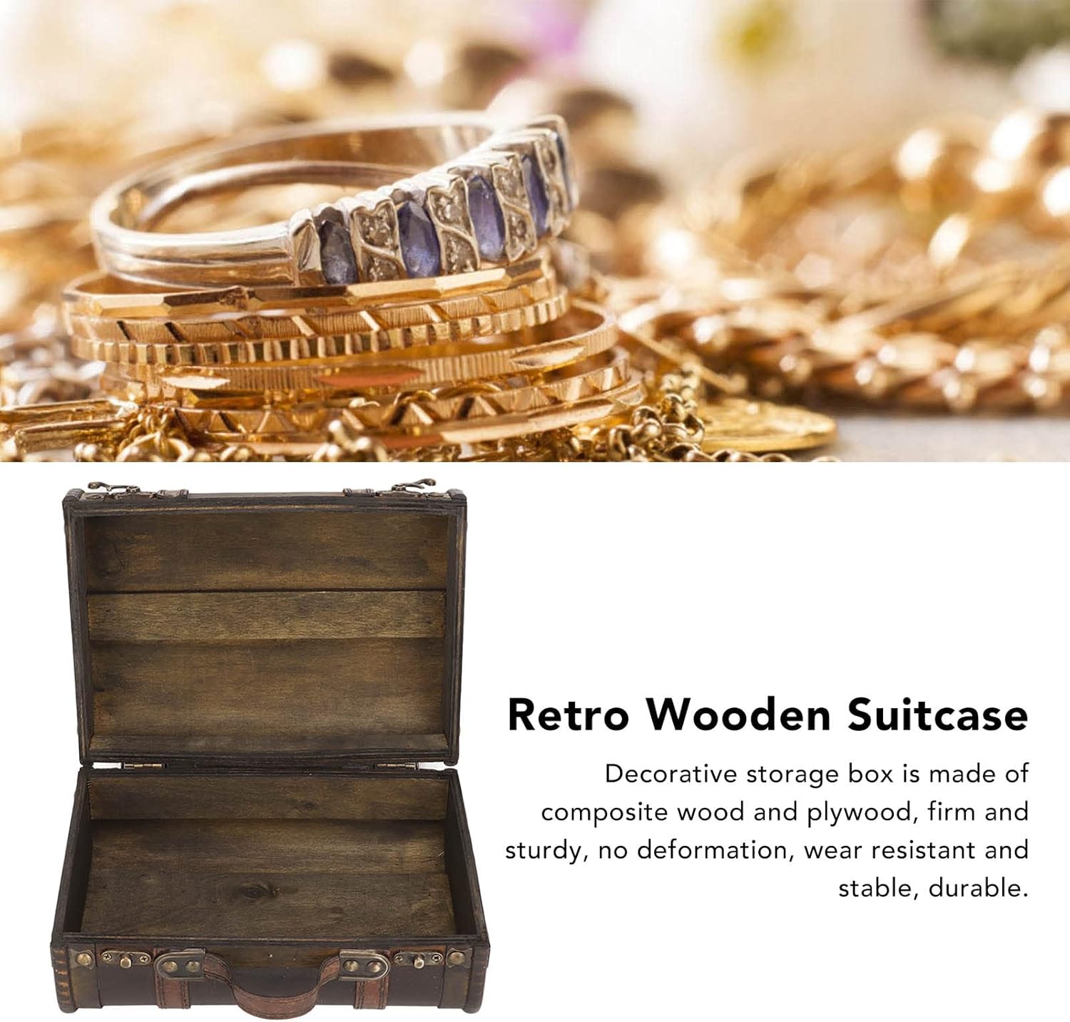 Retro Wooden Suitcase, Artificial Leather Jewelry Storage Box Decoration Black Brown, Large Capacity Suitcase Storage Box, Vintage Trunk, Widely Applicable Decorative Suitcase