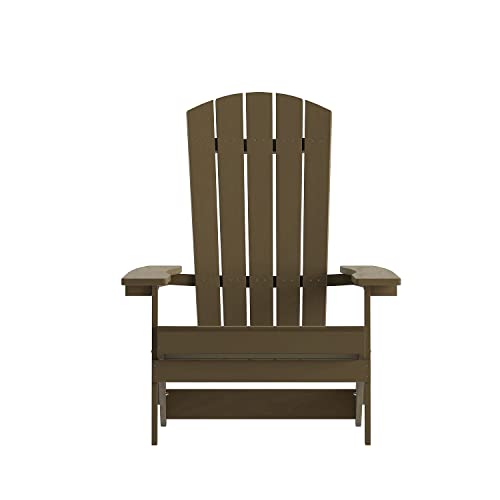 Flash Furniture Charlestown Folding Adirondack Chair - Mahogany - Poly Resin - Indoor/Outdoor - Weather Resistant - Set of 4