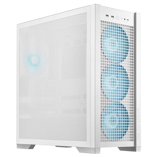 ASUS TUF Gaming GT302 ARGB ATX Mid-Tower PC Case – Four 140 x 28 mm ARGB Fans for High Airflow, Interchangeable Tempered Glass or Mesh Side Panels, Supports BTF Hidden-Connector Motherboards | White