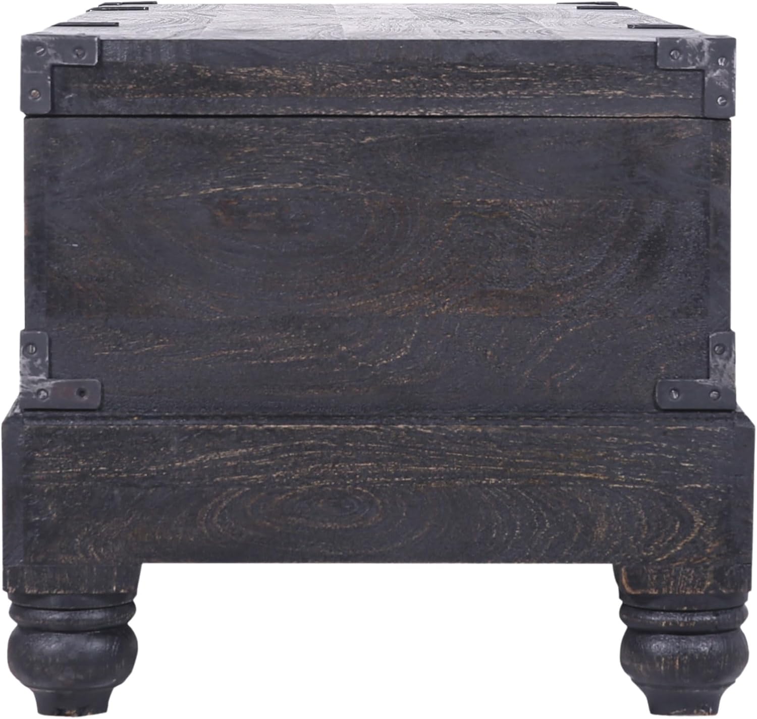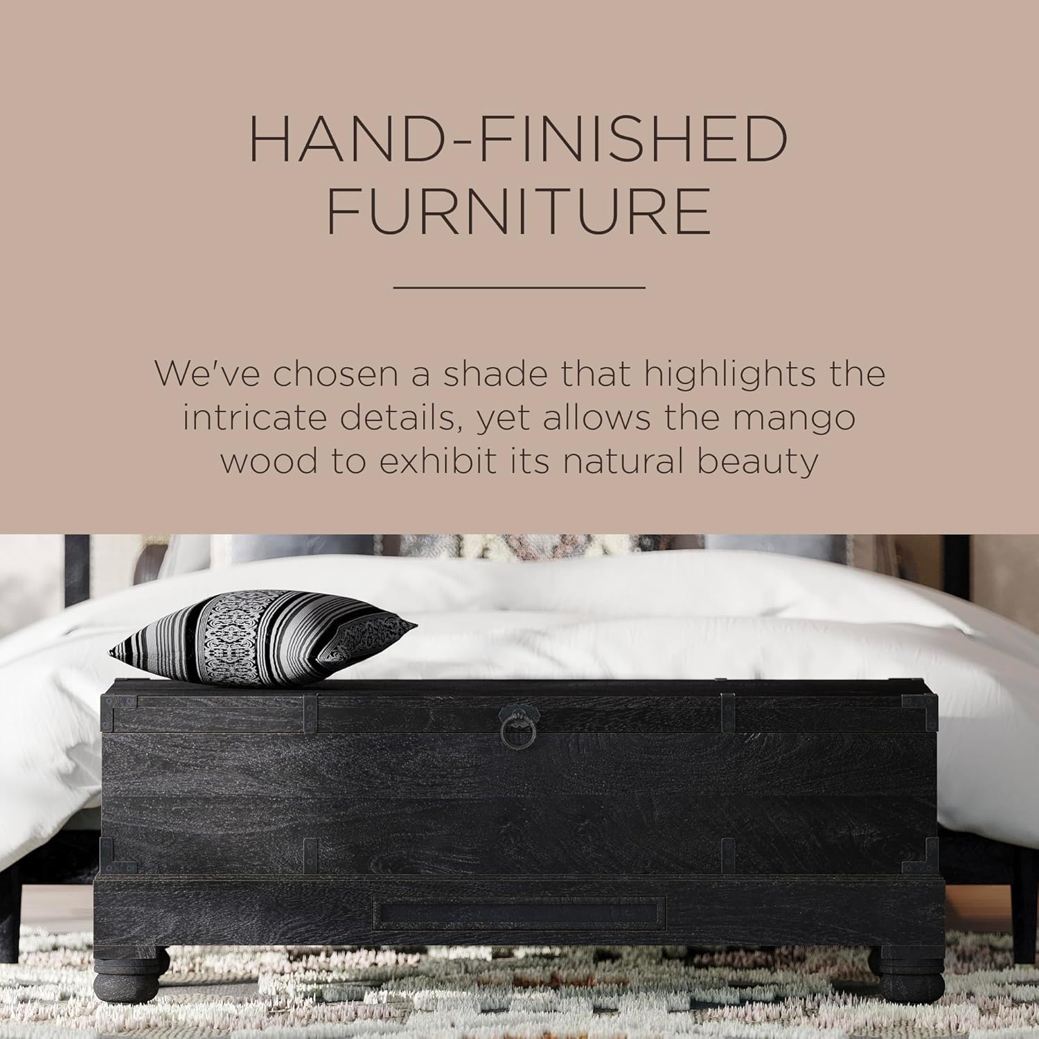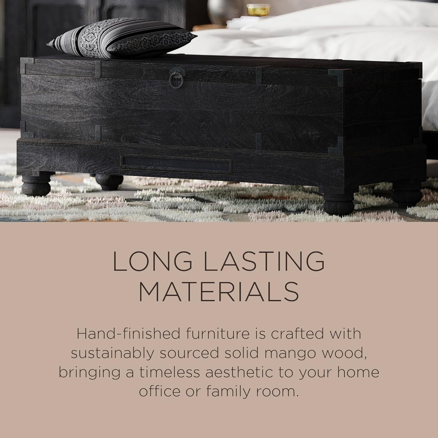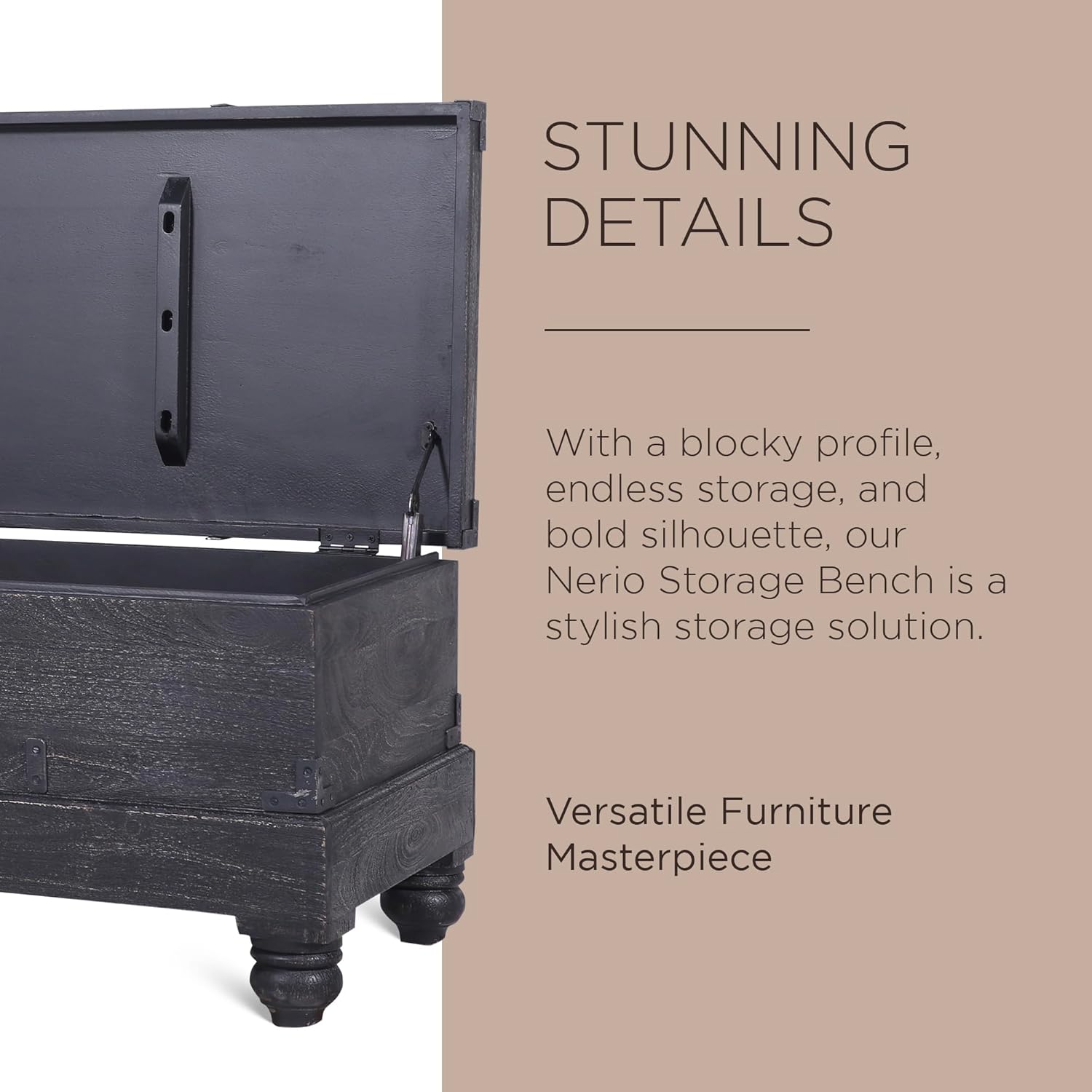 Maven Lane Nerio Handmade Heritage Large Wooden Storage Bench with Hinged Lid for Indoor Entryway or Coffee Table Trunk in Distressed Black Finish