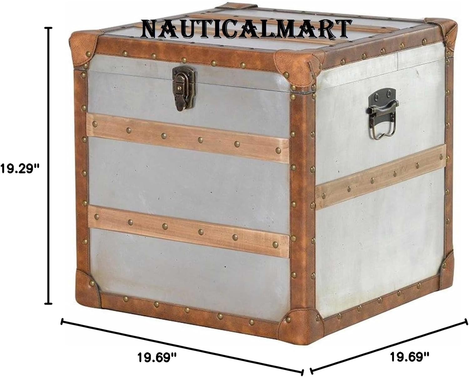 NauticalMart Modern Medium Square Metal Lockable Storage Trunk Chest Wooden Lats