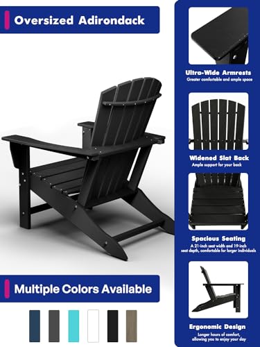 Adirondack-Chairs-Set of 2 | Wood Grain | Fire Pit Chair | Oversized | HDPE Plastic | Weather Resistant | for Deck Outdoor Poolside Campfire