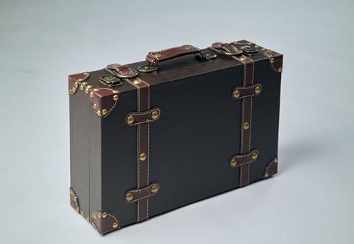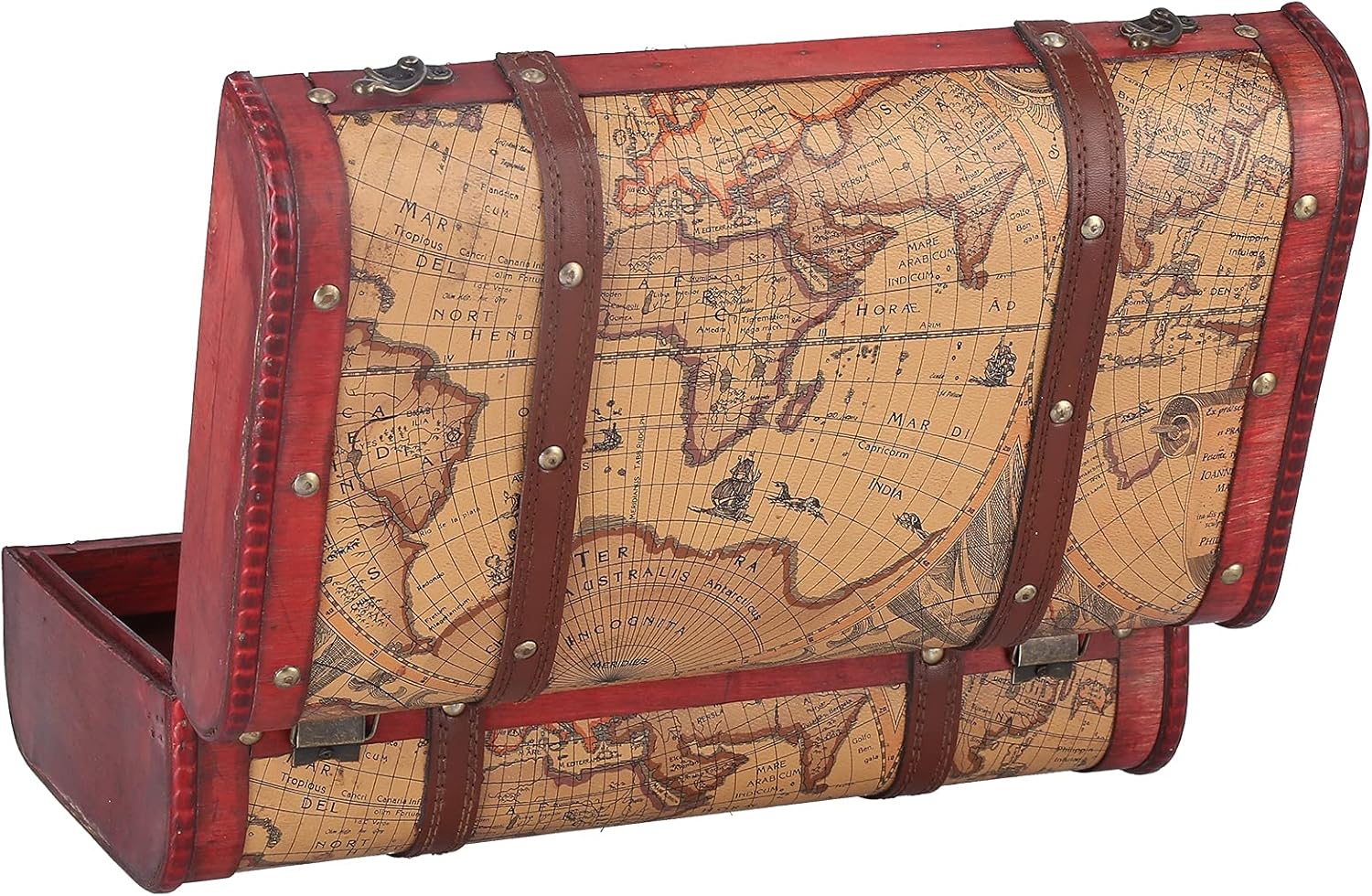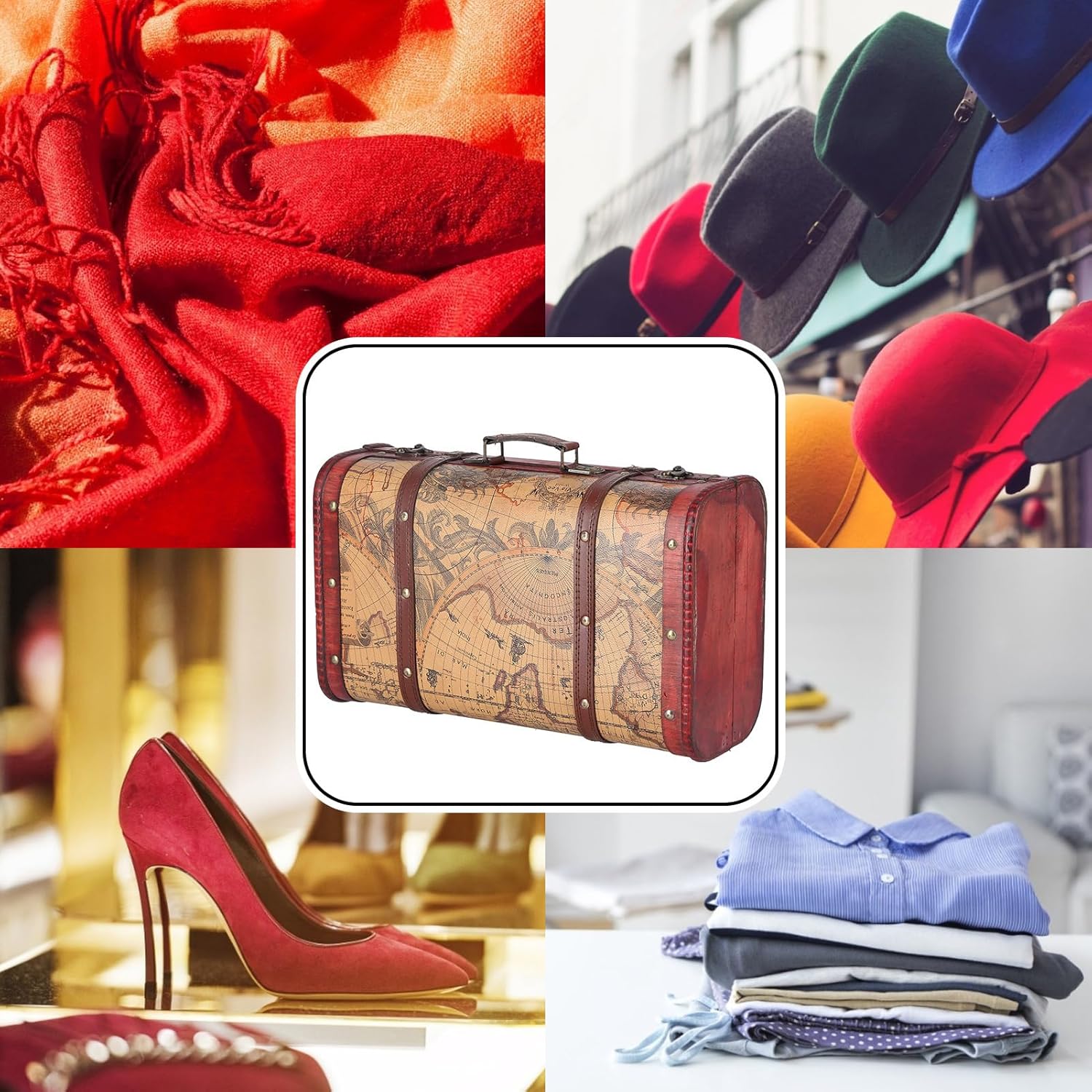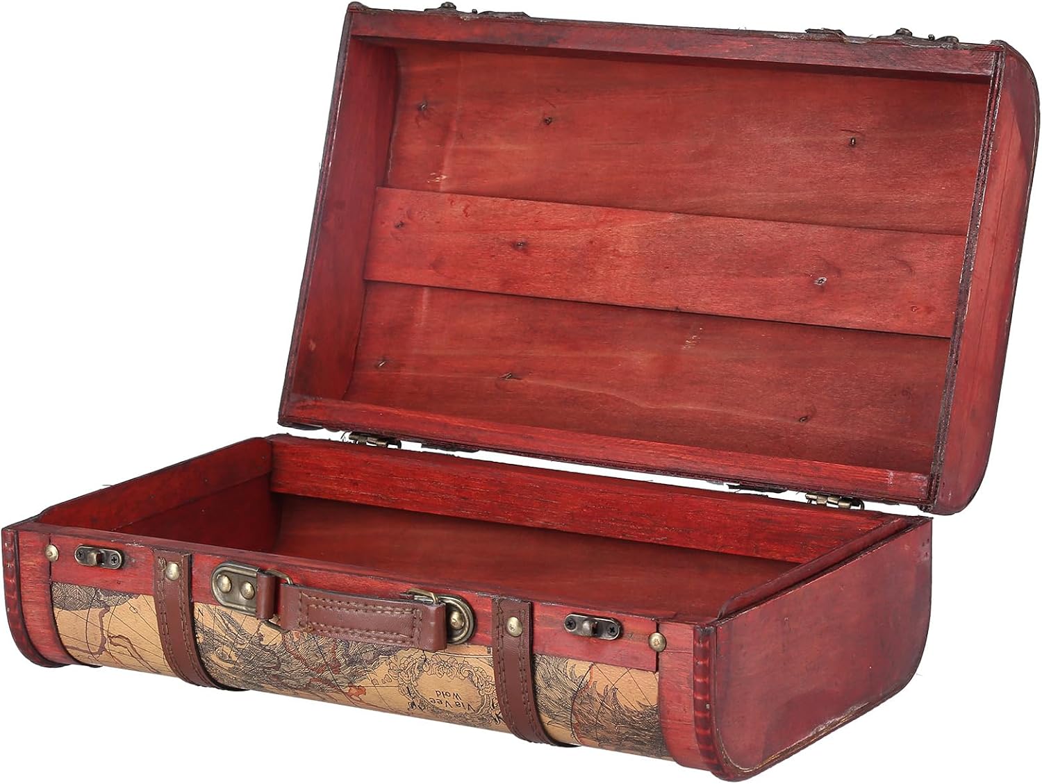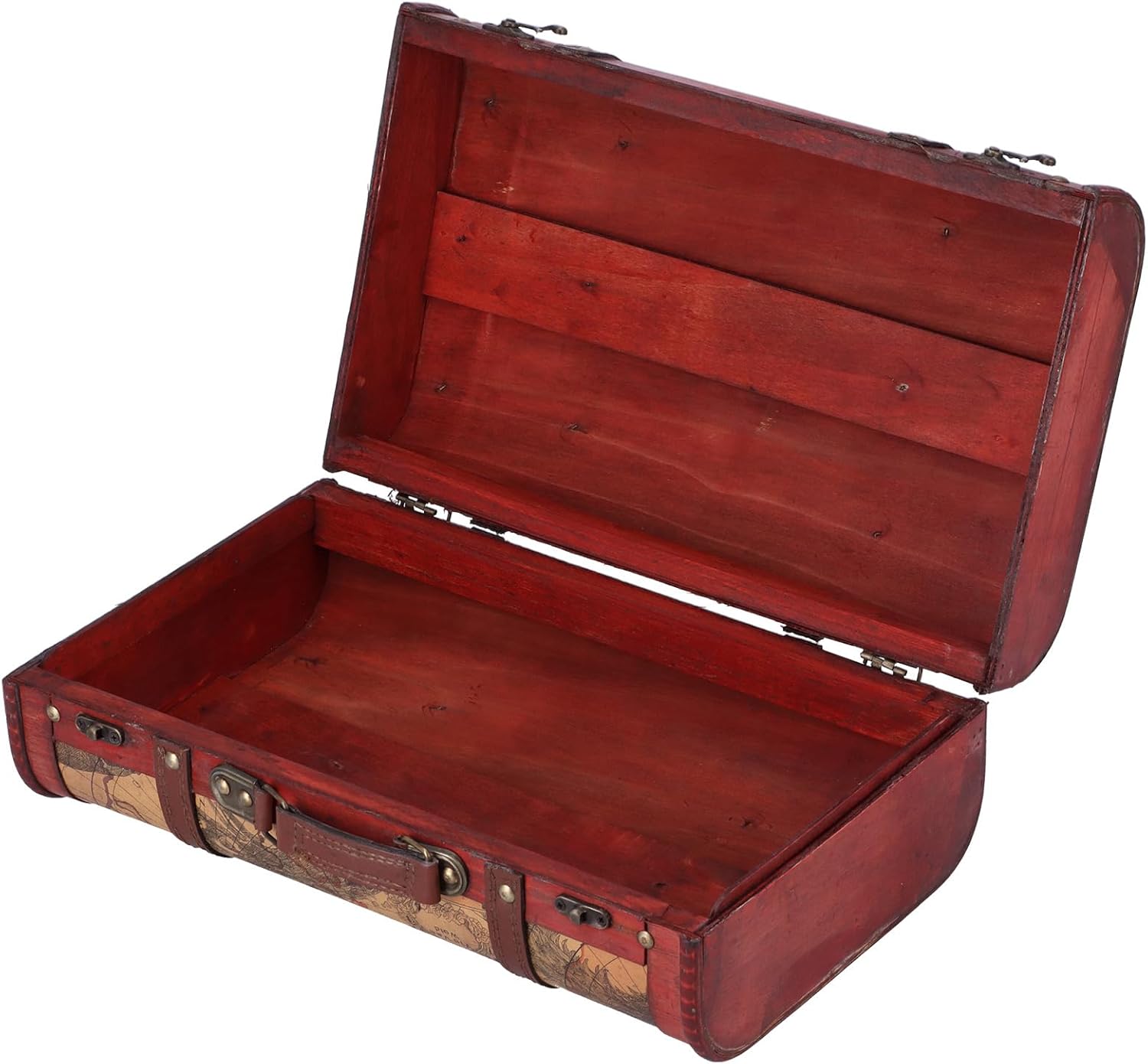 Vintage Suitcase, Decorative Treasure Wooden Trunk Antique Leather Suitcase Storage Box Map Portable Nostalgic Storage Box Collection Ornaments