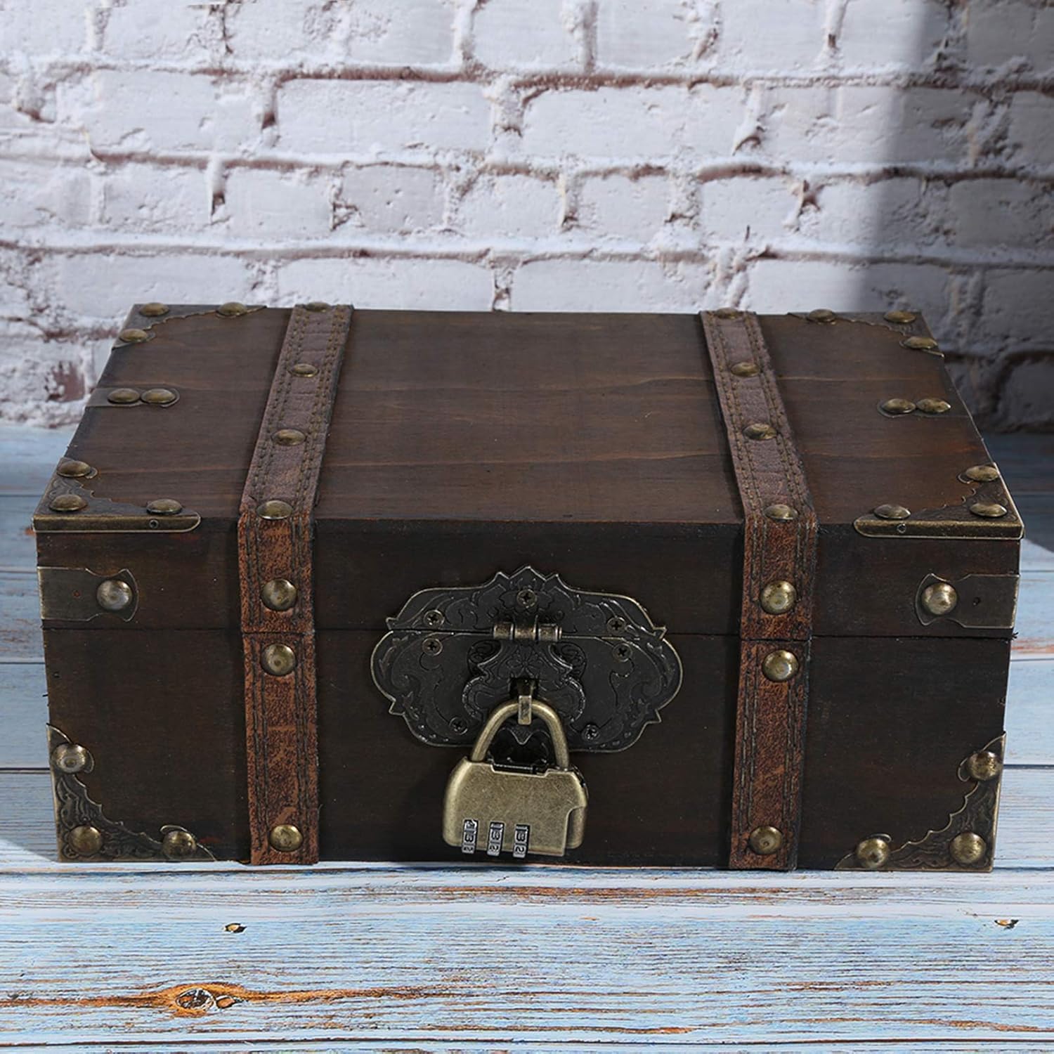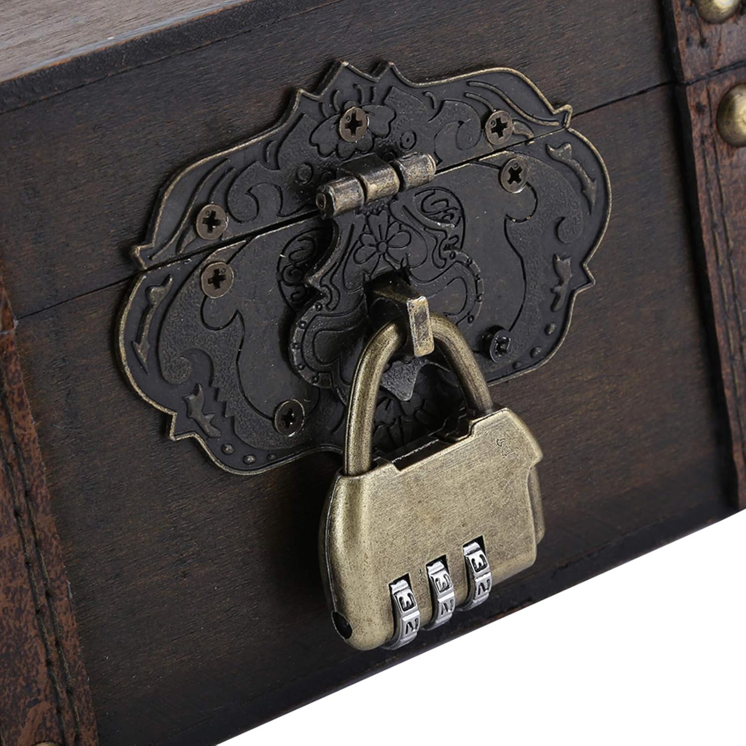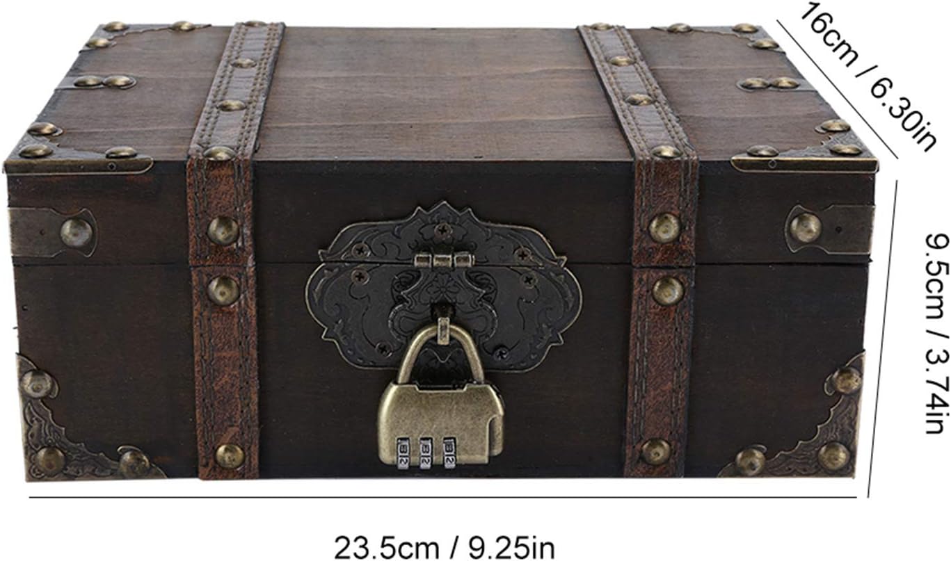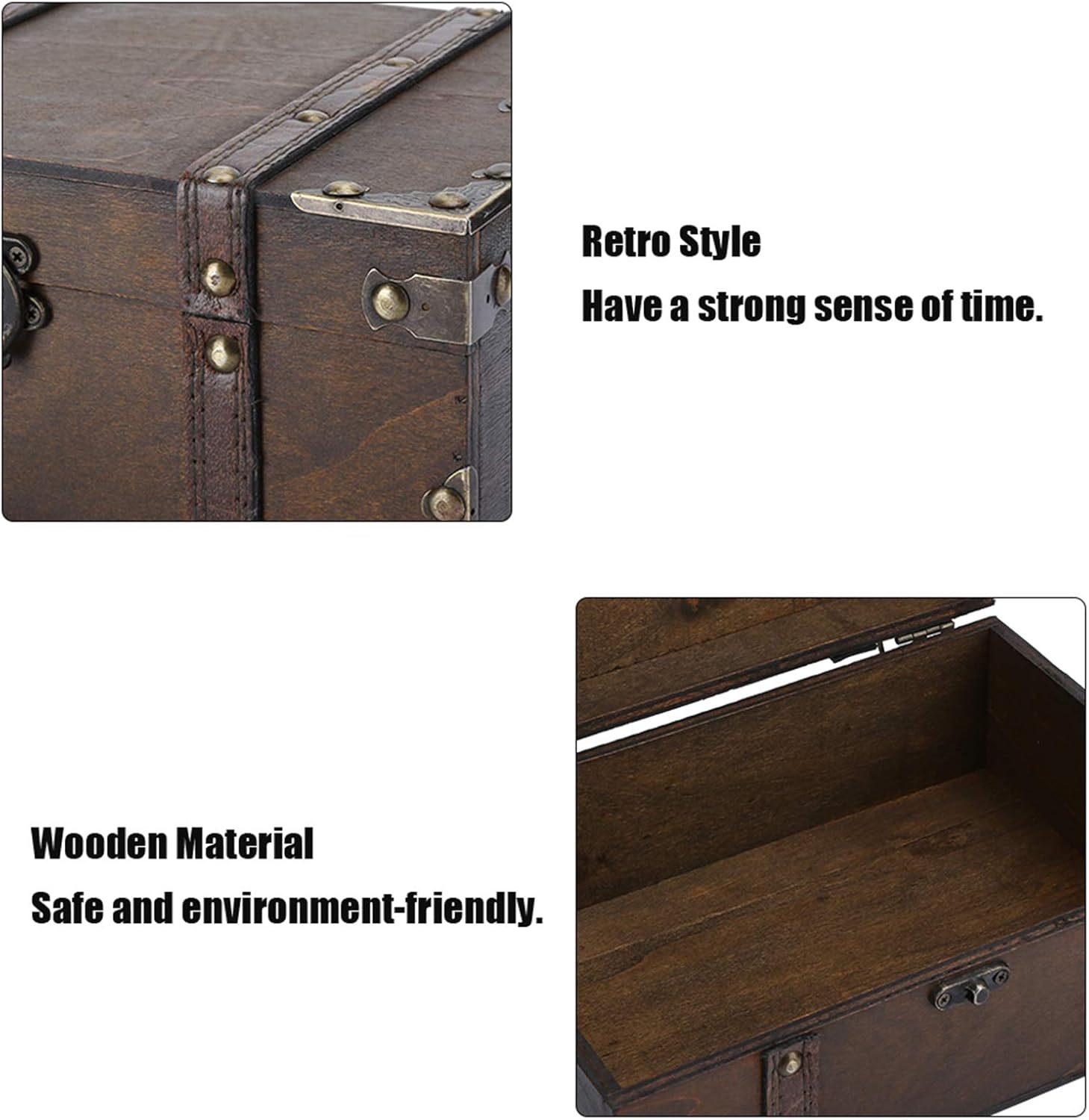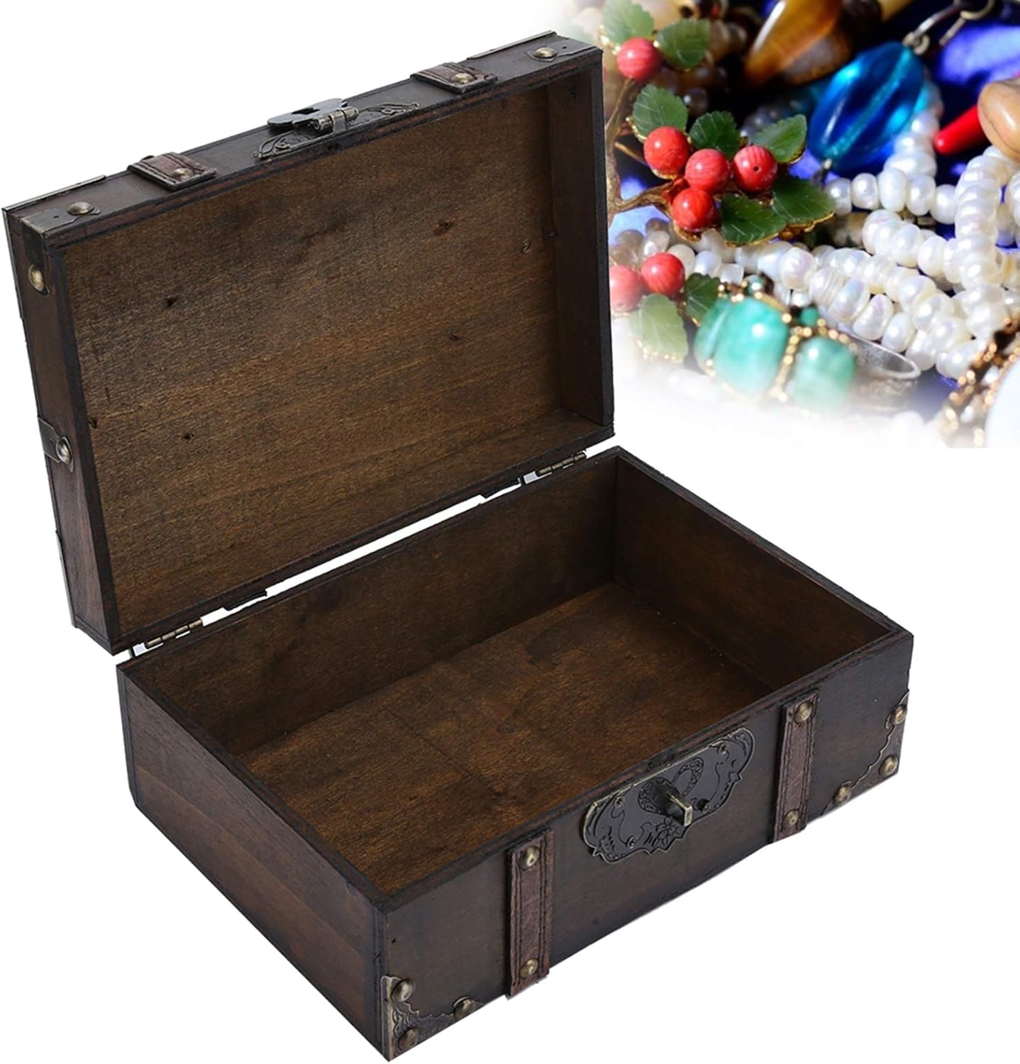 Ejoyous Treasure Chest, Vintage Wooden Box Decorative Treasure Jewelry Collection Storage Boxes with Lock and Lid for Home Decoration (6282-2302GK10-Retro Desktop Storage)