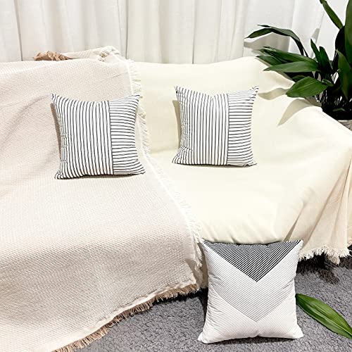 Gray and White Stripe Pillow Covers 12"x20", Set of 2 Modern Outdoor Black and White Decorative Pillows Covers for Couch, Living Room, Sofa, Bedroom