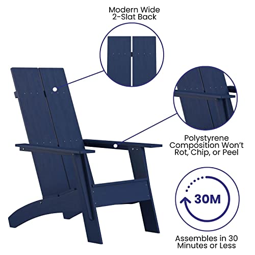 Flash Furniture Finn Modern Adirondack Rocking Chairs All-Weather Poly Resin Wood-22 Round Fire Pit Includes Spark Screen, Rack, & Poker, 2 Pack, White