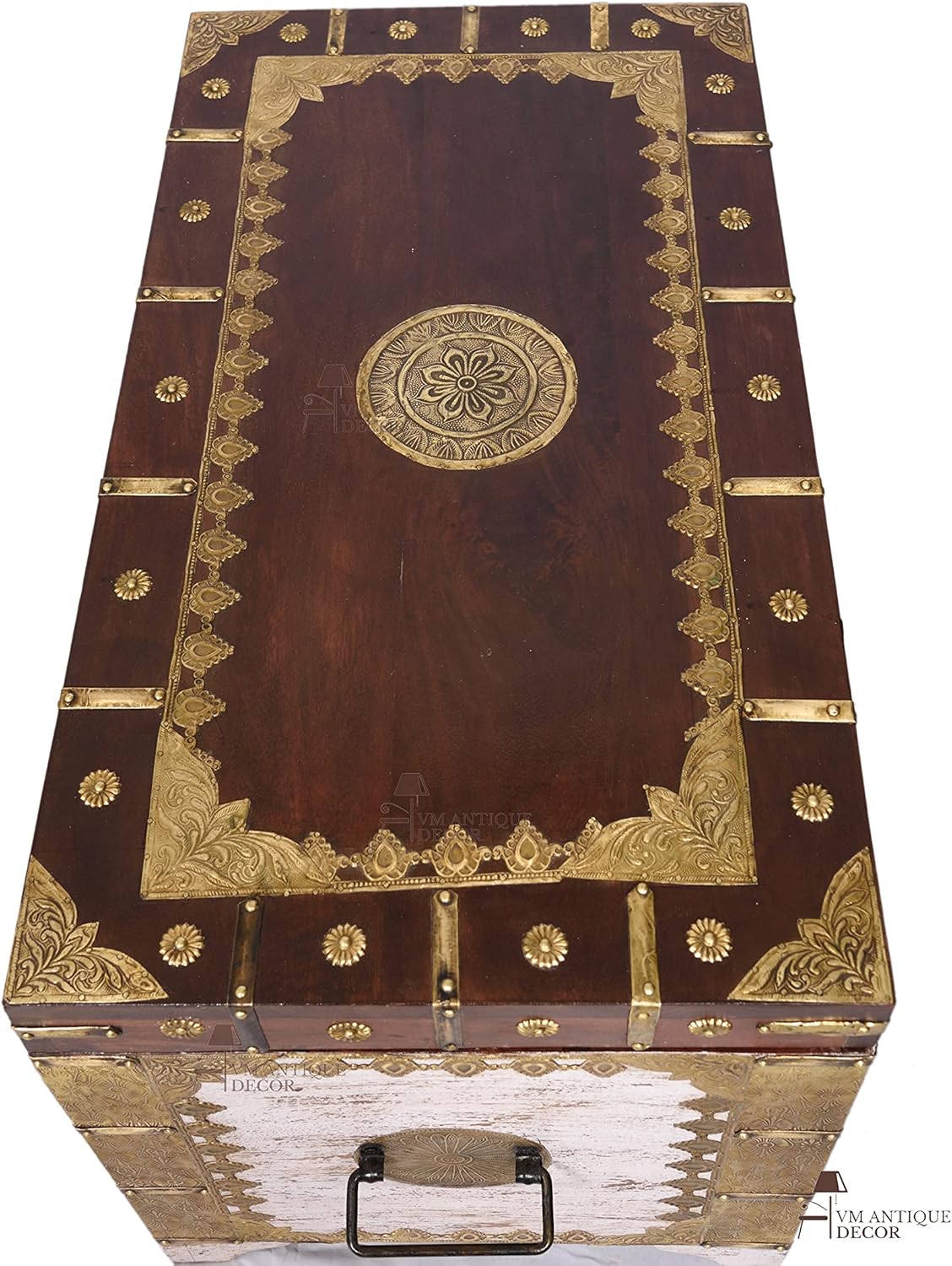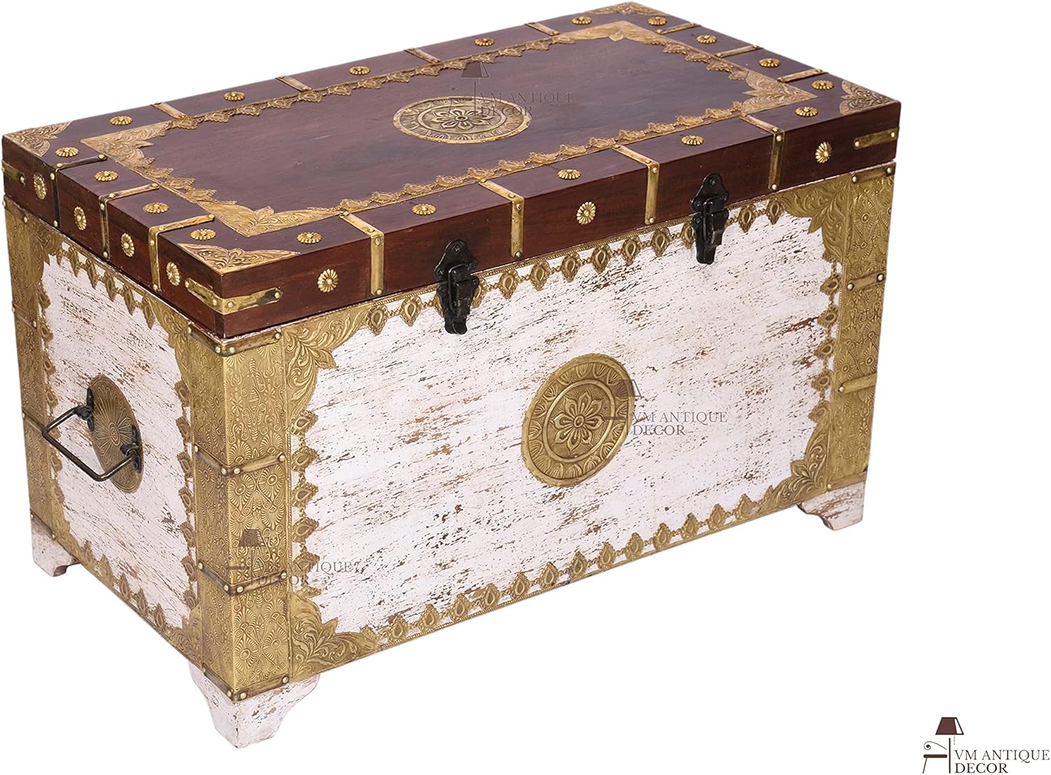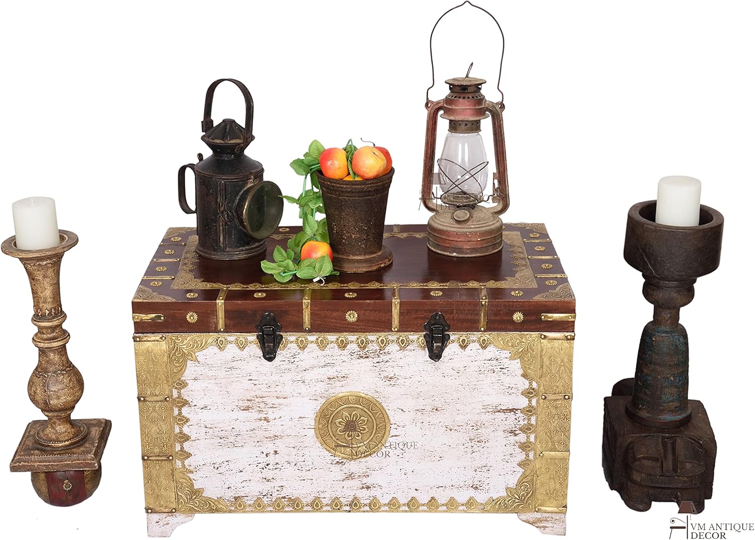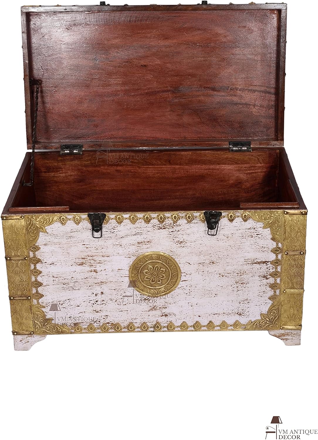 Solid Mango Antique Wooden Trunk Box | Multifunctional Wooden Storage Box | Coffee Table Living room |Toy Chest Organizer | Vintage Pirate Chest for Classroom (Size - 18X31X17 Inches)