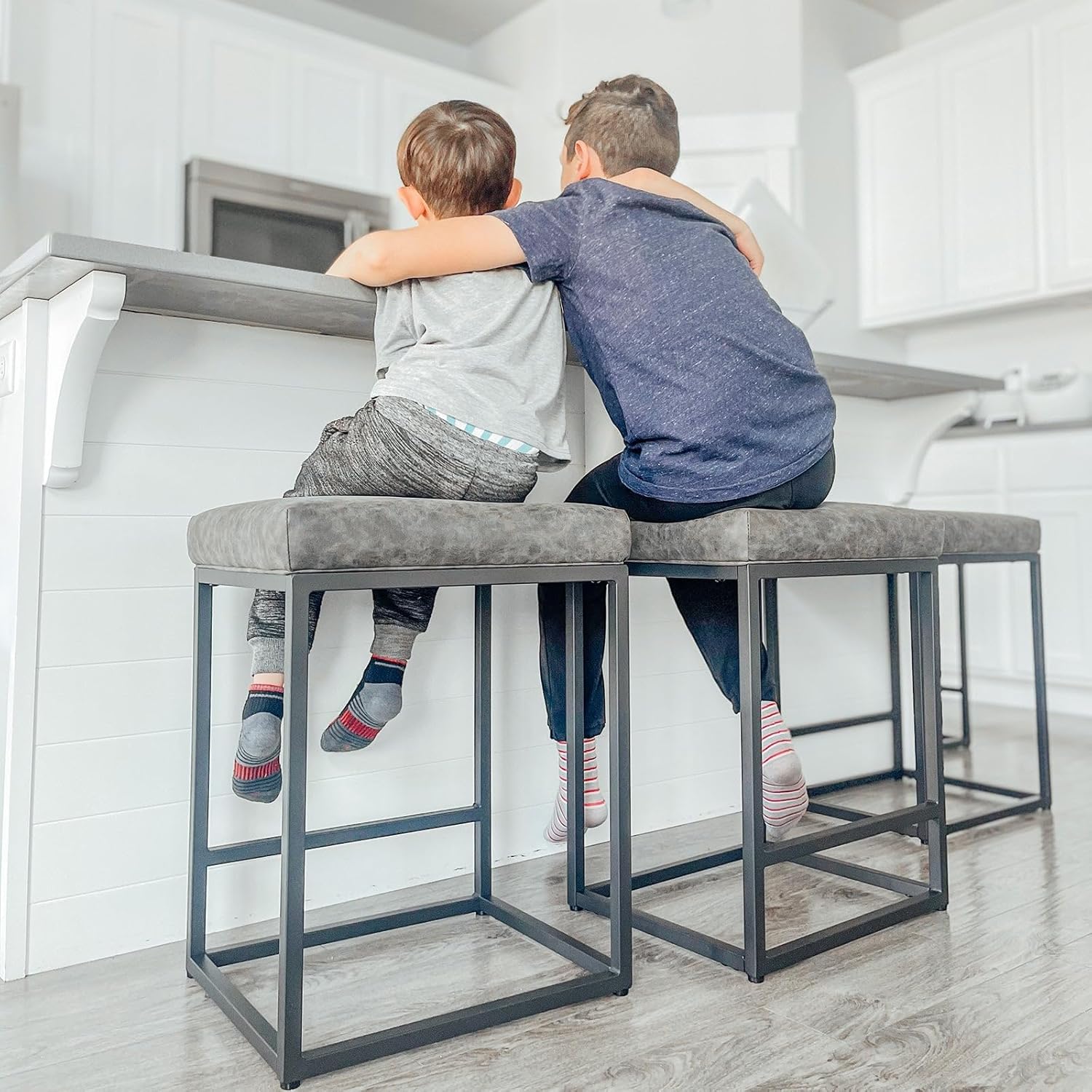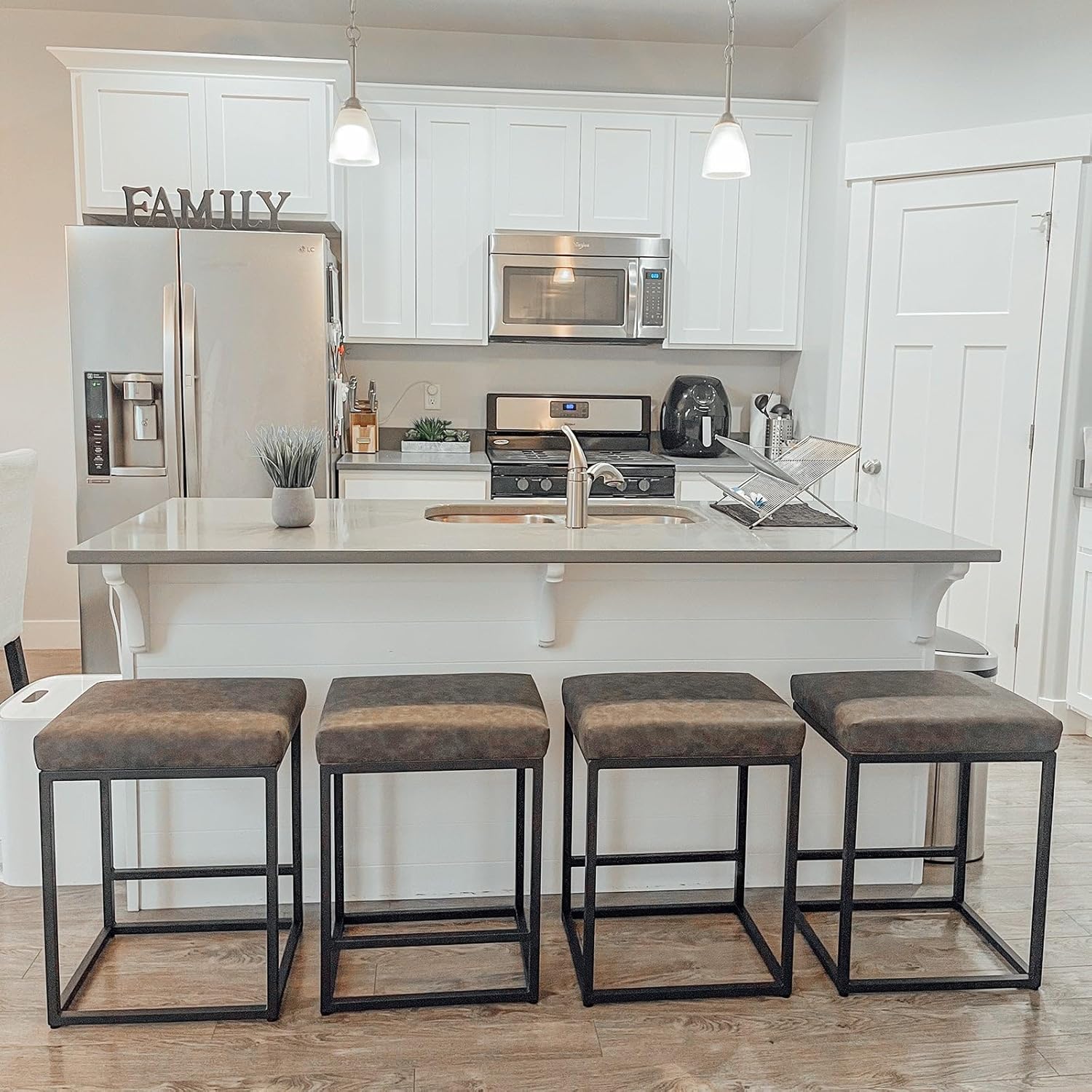 PHI VILLA Bar Stools set of 2 - Thick Cushion Bar Chairs Metal Steel Frame Base with Footrest, Counter Height 24'' Bar stools