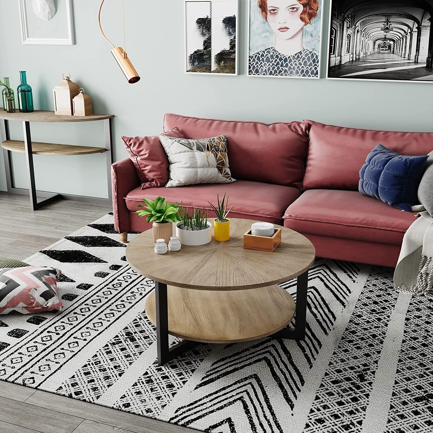 Overstock Round Coffee Table with Solid Wood Storage Circle Center Table Rustic Wood Coffee Table Wood N/A Rustic Wood Coffee Tables, End Tables