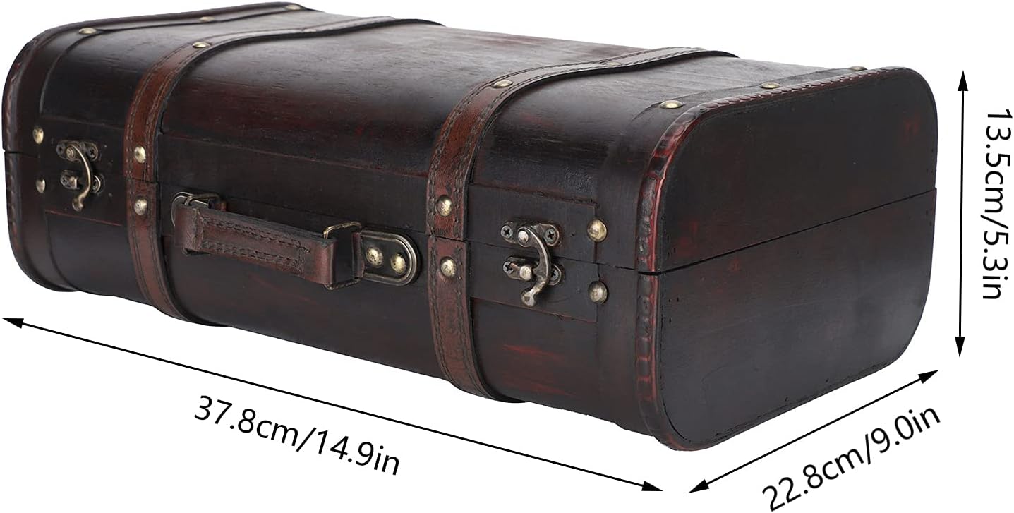 Antique Wooden Case, Retro Nostalgic Suitcase Wooden Suitcase, Double‑Layer Design for Home Home Decoration