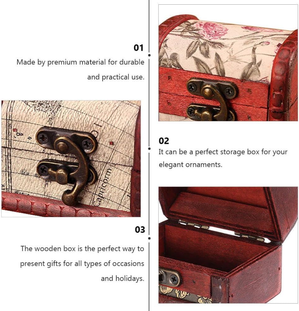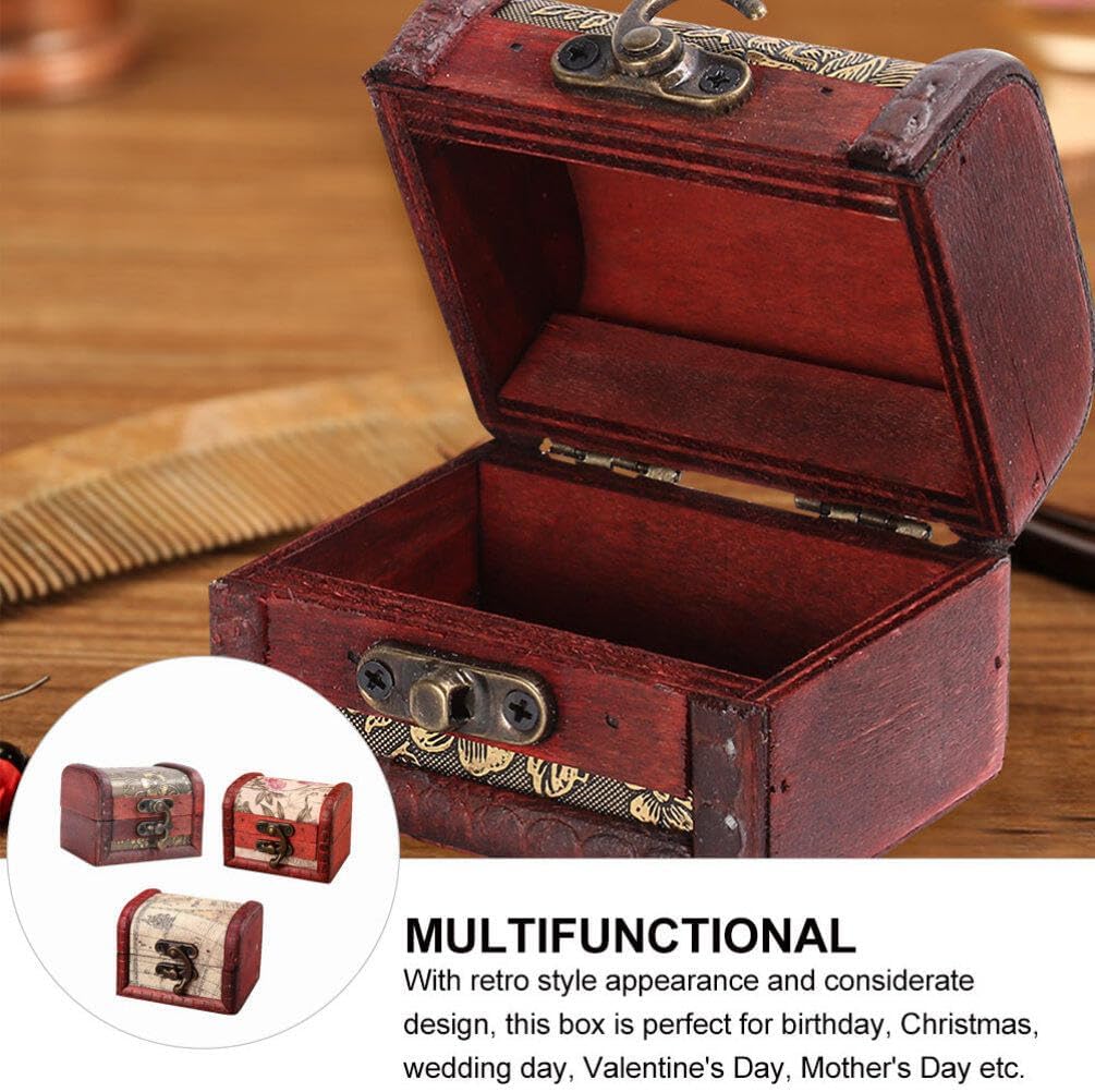 Tofficu Small Wooden Box Treasure Chest Box 3Pcs Wedding Favor Boxes Retro Style Mini Storage Trunk Trinket Jewelry Pirate Treasure Chest for Wedding Birthday Party Small Wooden Box Vintage Luggage