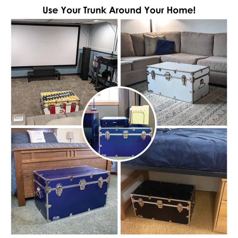 C&N Footlockers - XL Graduate Storage Trunk w/Tray - Made in the USA - STEEL Footlocker for College Dorm Room & Summer Camp - 32 x 18 x 18.5 Inches (White)