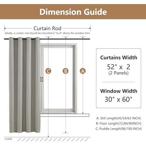 Black Out Curtains 84 Inch Long 2 Panels Set for Living Room, Window Treatment Panels Room Darkening Blackout Drapes Energy Saving Thermal Insulated Grommet 100% Blackout Curtains(52x84in, Gray)